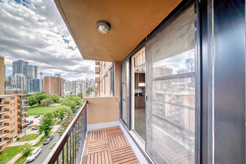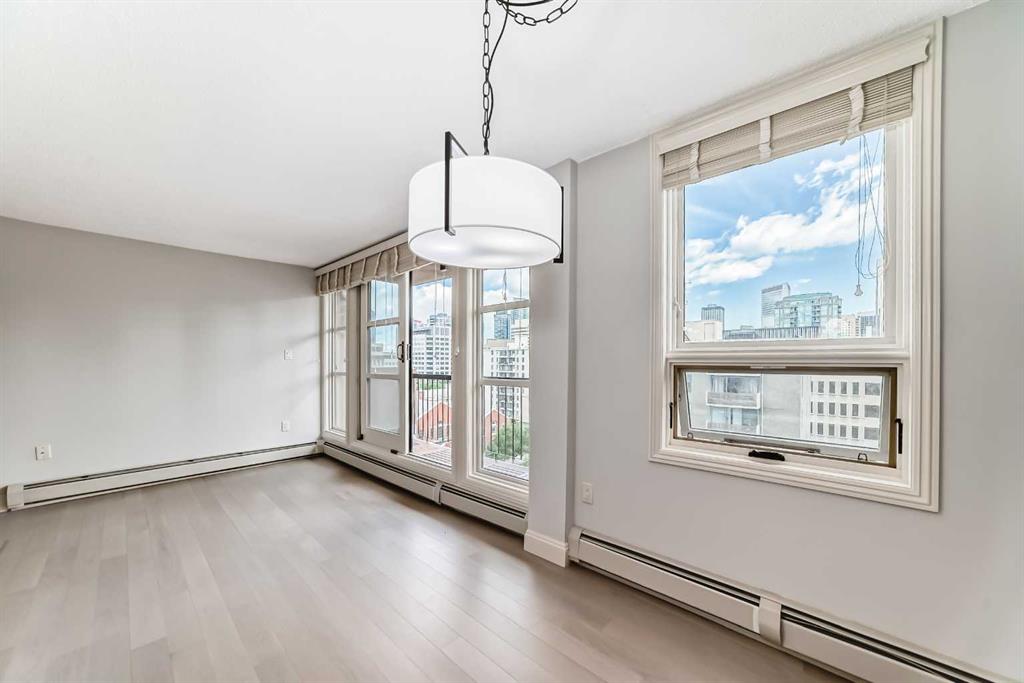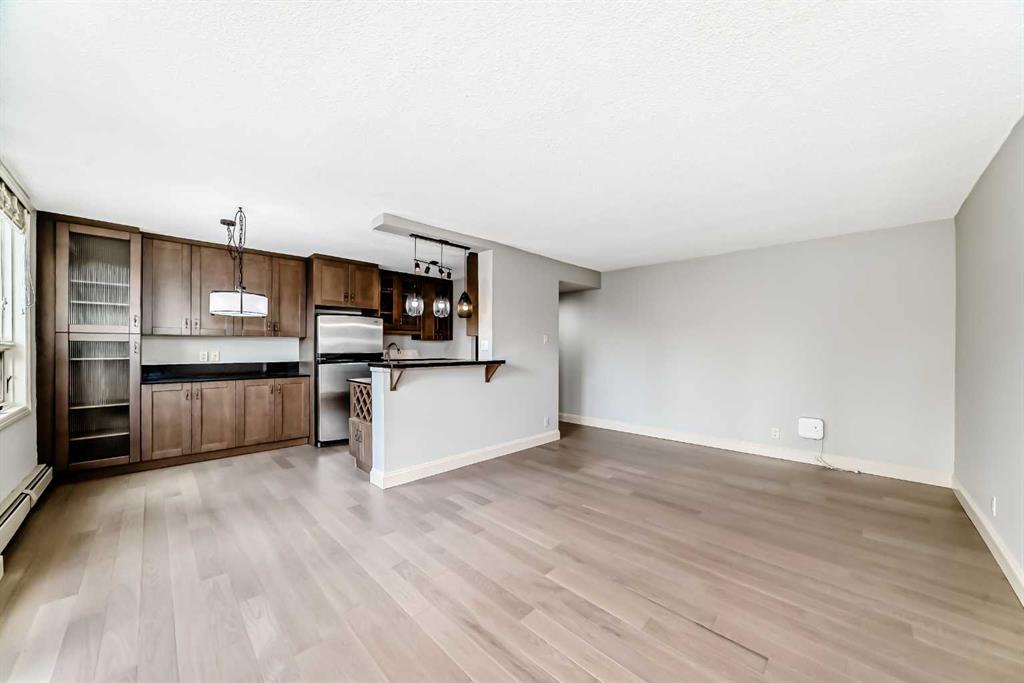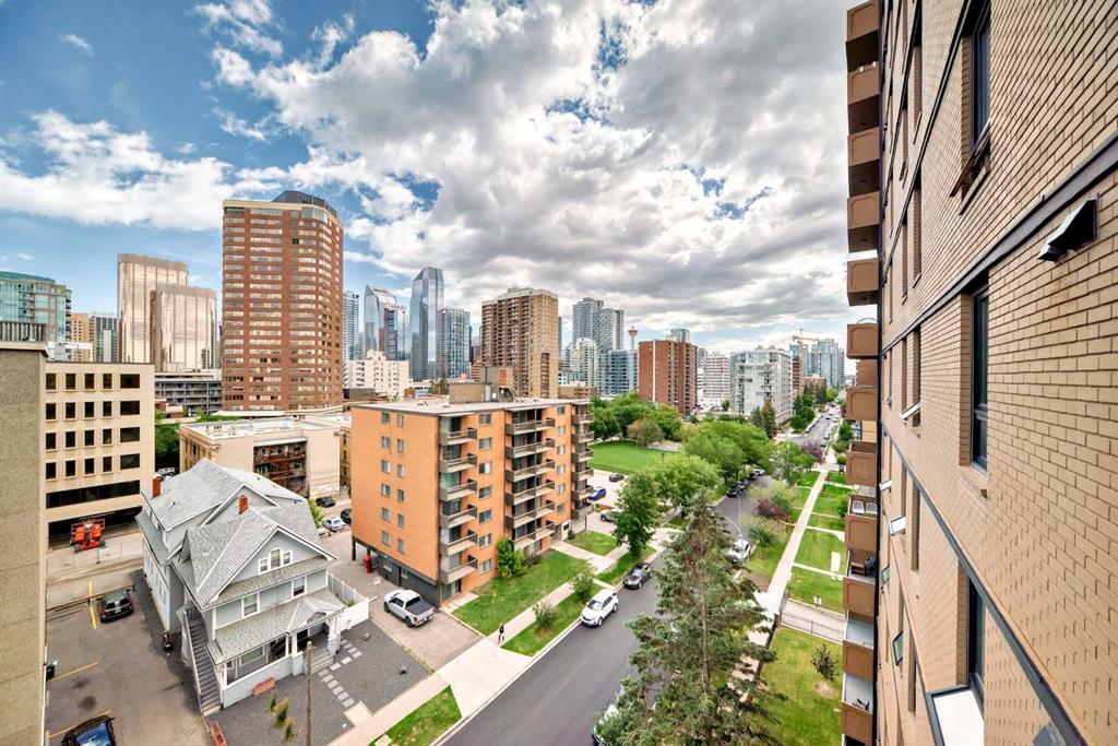 New Price! Vibrant location! Come home to a spacious two bedroom condo with great views of downtown and Beaulieu Gardens. Turn key, recently upgraded with fresh paint and engineered hardwood flooring, close to great boutiques, restaurants and pathways! Open concept great for entertaining, the kitchen showcases granite counters and stainless steel appliance package and overlooks dining and living room with an expansive balcony. (A couple photos have been virtually staged). This stylish bright condo offers lots of storage with both in-suite laundry and common laundry. This concrete building offers twin elevators, exercise room, social room, separate storage and designated parking. Well managed with heat and electricity included in condo fees and is a pet friendly building (with board approval). Rarely found, the building has a large fenced in grass yard with seating. No post tension, no age restrictions! Come home desired Beltline, flexible possession!