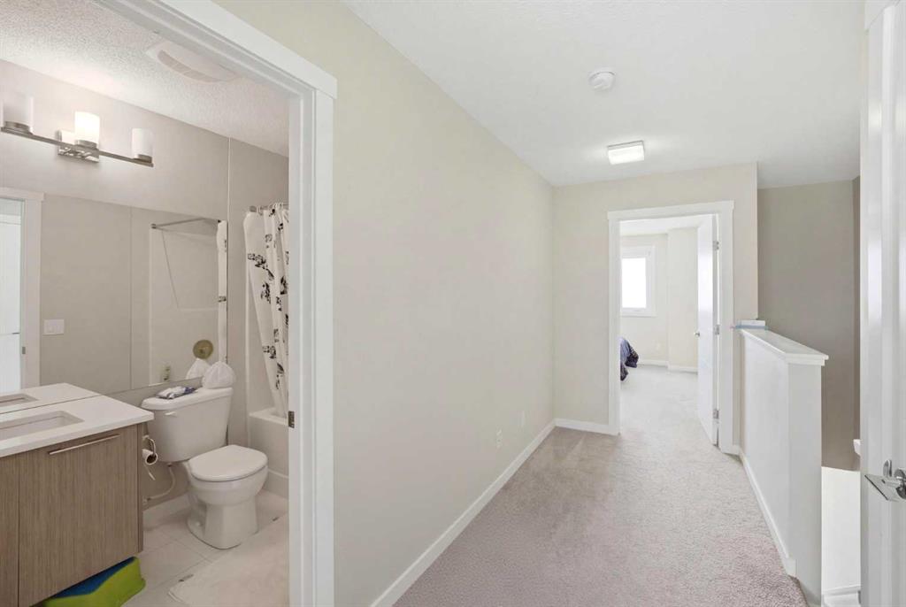 Upstairs, you’ll find two spacious bedrooms, each with large windows that create an airy and inviting atmosphere. The primary suite includes its own private 3-piece ensuite, while an additional full bathroom provides convenience for family members or guests. A main-floor powder room adds extra practicality for everyday use.