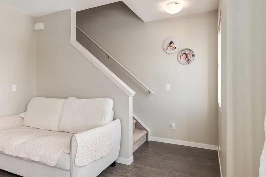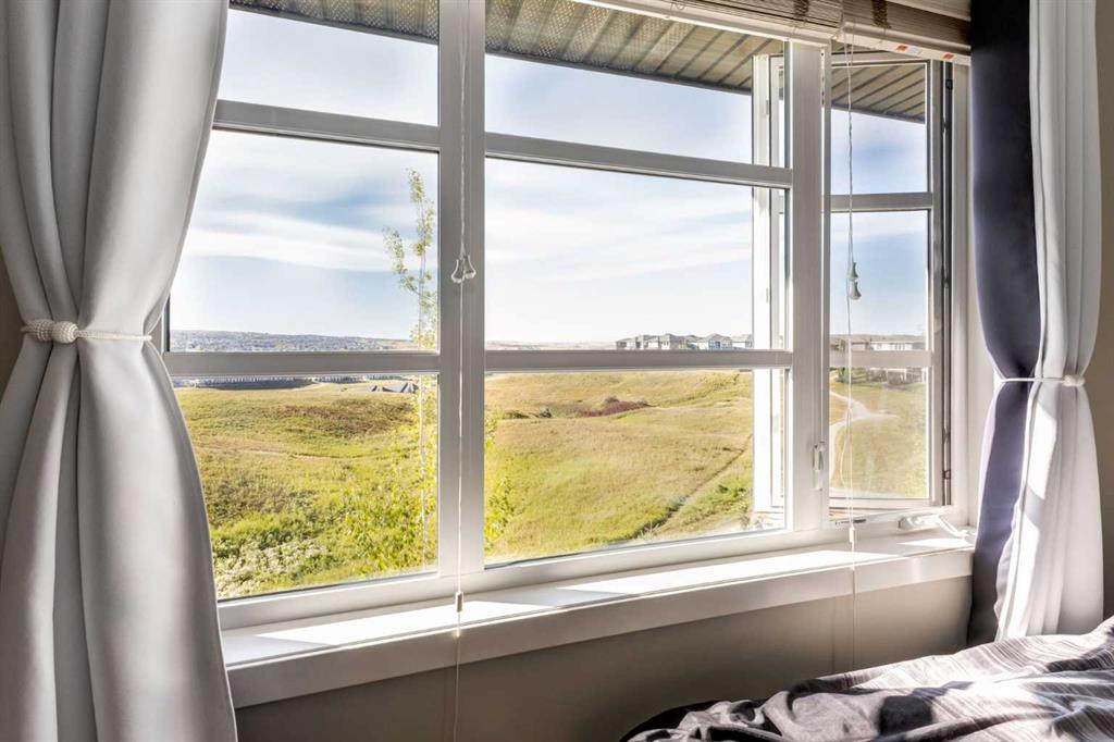 Open House 2-4PM, Saturday, April 18, 2026. Priced to sell! Enjoy breathtaking ravine and green space views from this beautifully maintained 3-bedroom, 2.5-bathroom townhome in Vantage on Evansridge. With nearly 1,541 sq. ft. of finished living space, a double attached garage, and low condo fees, this home offers outstanding value compared to nearby single-family houses. From the private front patio, step into the main floor featuring a versatile bedroom that can also serve as a home office or den, along with direct access to the garage. Upstairs, the open-concept second level is anchored by a stylish kitchen with a large granite island, stainless steel appliances, dark-stained maple cabinets, and a spacious pantry. The kitchen flows seamlessly into the dining area and bright living room, where expansive windows frame the stunning ravine views. A balcony with a gas line and a convenient half bath complete this level. The top floor offers three bedrooms, two full bathrooms, and laundry. The primary suite features a walk-in closet and a beautifully upgraded ensuite with a double shower. Additional highlights include Hunter Douglas window coverings, a water softener, and an insulated garage that easily fits two vehicles. This move-in ready home is surrounded by natural pathways, playgrounds, and green space, with Our Lady of Grace School, transit, and quick access to Stoney Trail and Deerfoot nearby. With incredible views, modern finishes, and a fantastic location, this is the perfect place to call home. Click the Virtual Tours for more detail!