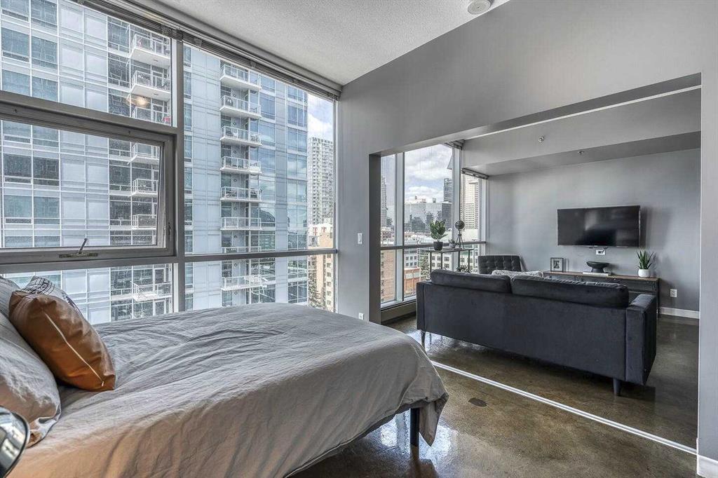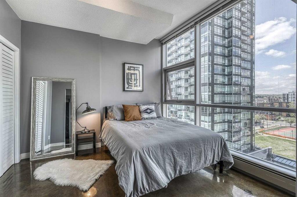 An incredible opportunity to own a thriving Airbnb with all furniture and furnishings included in Calgary’s vibrant Downtown Beltline District! Bathed in natural sunlight, this stunning West-facing residence in the highly coveted, Colours by Battistella building effortlessly blends industrial style with contemporary elegance. Boasting 2 bedrooms and 1 bathroom, this unit features soaring 9-foot ceilings, polished concrete floors, and dramatic steel-framed floor-to-ceiling windows that frame incredible city views. The sleek kitchen is a delight with granite countertops and stainless-steel appliances, while conveniences such as in-suite laundry and central A/C ensure year-round comfort. As an established Airbnb property, this unit allows you to seamlessly take over the reins and continue reaping the rewards of this venture. Perfectly positioned in the vibrant Victoria Park neighborhood, you’ll be just moments from downtown, Calgary Stampede Grounds, the Bow River, 17th Ave, and an array of Calgary’s trendiest spots—including Starbucks, Ten Foot Henry, and Proof—plus endless dining, nightlife, and entertainment options, all with public transit at your doorstep.