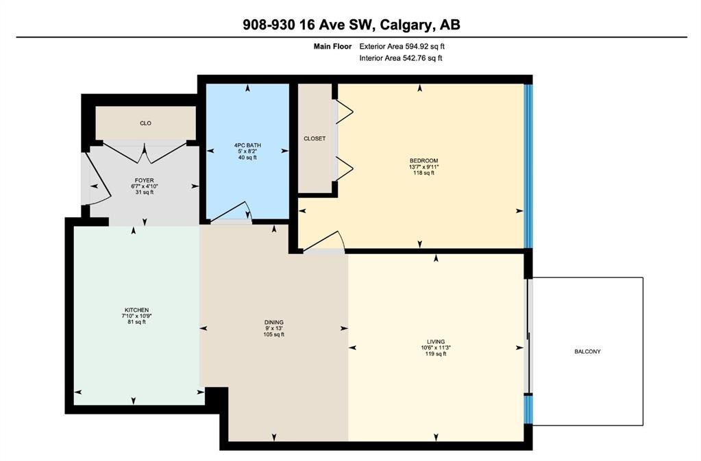 Live like royalty in the Beltline! Just steps from 17th Ave’s dining, shopping, and nightlife, this 1 bed, 1 bath condo combines luxury finishes with unbeatable convenience. Floor-to-ceiling windows fill the open-concept layout with natural light, while the executive kitchen boasts BOSCH appliances, a gas range, built-in fridge/freezer, stone countertops, sleek cabinetry, and a spacious island perfect for entertaining. The west-facing balcony offers sun-filled living and an inviting extension of the space.