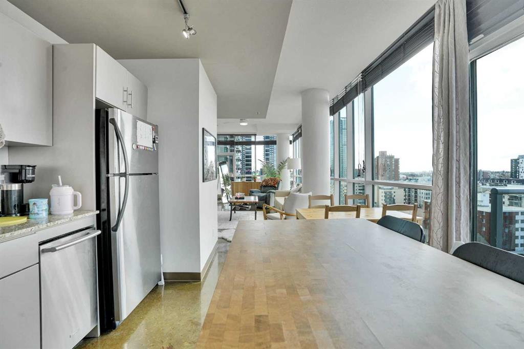 Experience elevated downtown living in this truly unique unit in the heart of Calgary. Surrounded by expansive windows, this bright and sun-filled space is bathed in natural light throughout the day. A standout feature of this exceptional home is its stunning view of the Rocky Mountains; a breathtaking backdrop you can enjoy from the comfort of your own living space. Whether you’re unwinding after a long day or entertaining guests, the scenery is always impressive. Perfectly suited for professionals seeking a vibrant urban lifestyle or investors looking for a high-demand property, this unit offers both comfort and long-term value. Step outside and enjoy everything downtown Calgary has to offer, with dining, shopping, and entertainment just moments away. This unit also comes with a titled underground parking stall, providing added convenience and value. The building is currently undergoing significant upgrades, including new carpeting and fresh paint throughout, further enhancing its appeal and future value. Don’t miss this rare opportunity to own one of the most distinctive units in the building, combining panoramic views, abundant natural light, and an unbeatable location.
