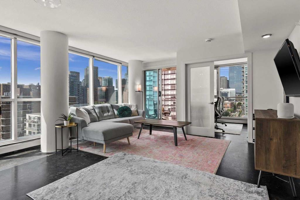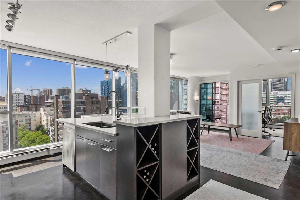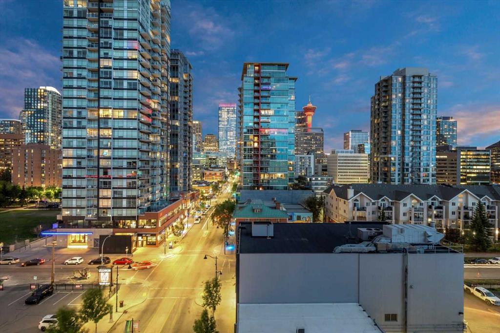 *CHECK OUT 360 VIRTUAL TOUR* West-Facing, Corner Unit with Modern Upgrades & Central A/C! Soak in the incredibledowntown views from this sleek 2 bedroom condo, where floor-to-ceiling windows bring the city skyline right into your living room. Located in TheChocolate building in the heart of The Beltline, enjoy the ultimate urban lifestyle just off 1st Street and 17th Ave, offering incredible restaurants,cocktail bars, and coffee shops, all while just a short distance from the Calgary Saddledome and Stampede Park. Designed for both comfort and style,the open-concept layout features polished concrete floors and a fully upgraded kitchen complete with quartz countertops, sleek stainless steelappliances, bright cabinetry, and a large island offering plenty of space to host and entertain. The main living area is the perfect spot to relax andenjoy the city views with floor-to-ceiling windows throughout. Wake up each morning to breathtaking views of the iconic Calgary Tower, perfectlyframed from your NW facing patio, the ideal spot to enjoy your morning coffee, or enjoy evening BBQs. The second bedroom offers versatile space,perfect for a comfortable home office or guest room. The updated 4-piece bathroom features a sleek modern vanity and ample storage. Additionalfeatures include in-suite laundry, a titled underground parking stall, complimentary bike storage, and a common courtyard patio for you to enjoyduring the summer months. Whether you’re a first-time buyer, urban professional, or investor, this condo delivers exceptional value and anunbeatable location!