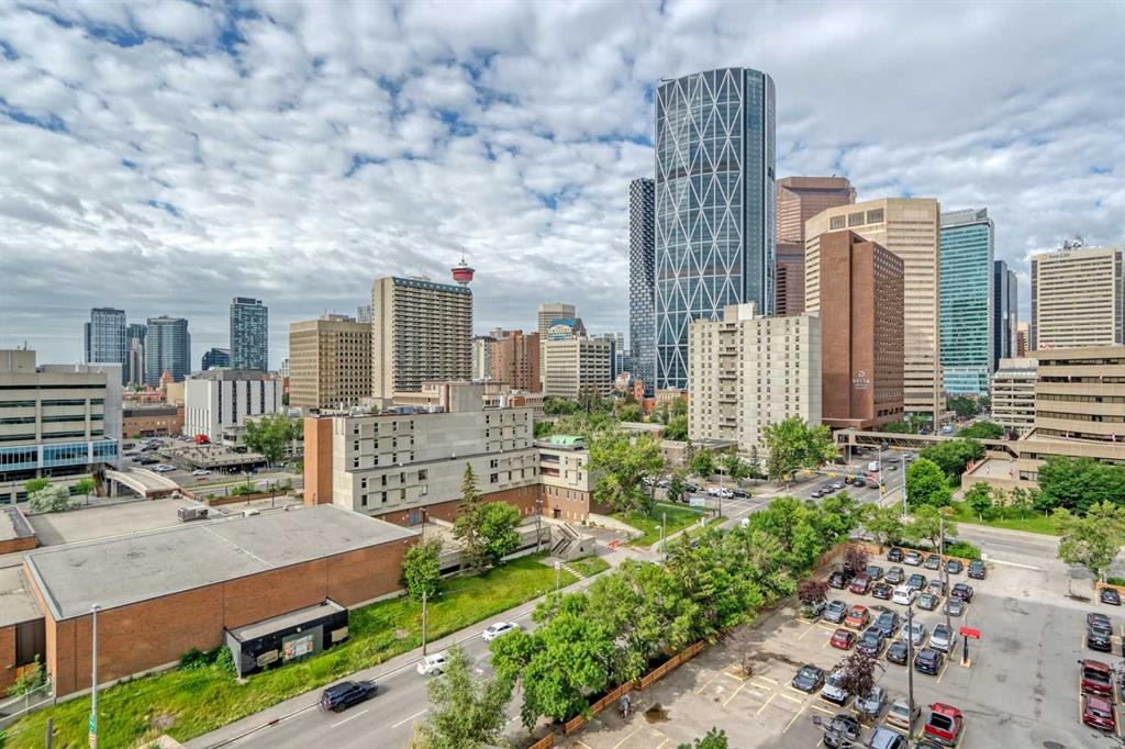 VIEWS, VIEWS, and VIEWS. Experience the ever-changing views north and northwest to the Bow River, and west to the downtown core and Calgary Tower. This TWO-BEDROOM, TWO-BATHROOM CORNER unit with a DEN and a BIG PRIVATE BALCONY is the largest on the floor, according to the official Condominium Plan prepared by an Alberta Land Surveyor.
