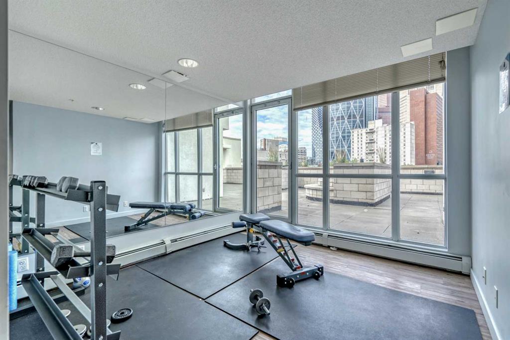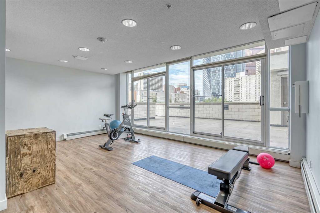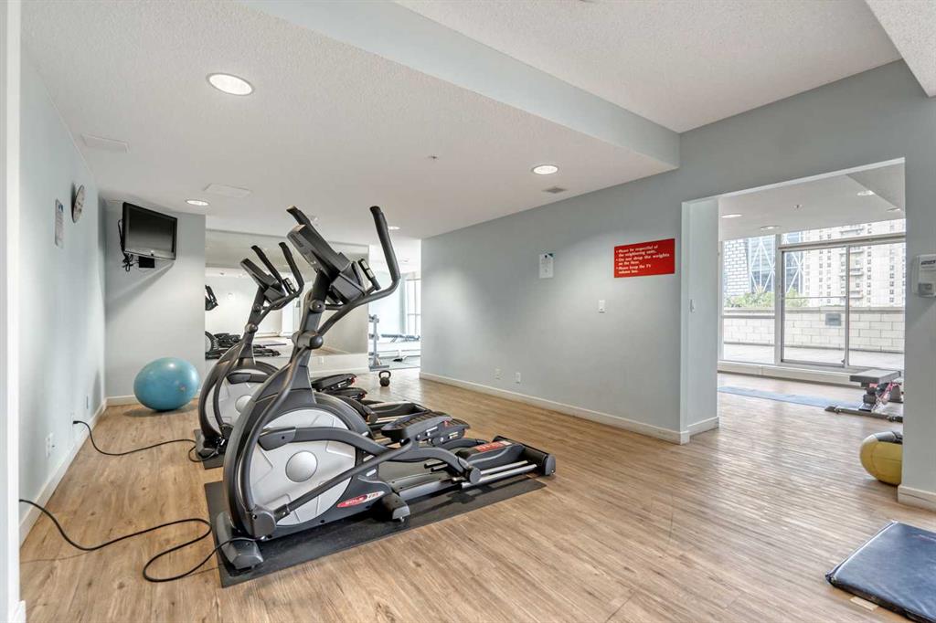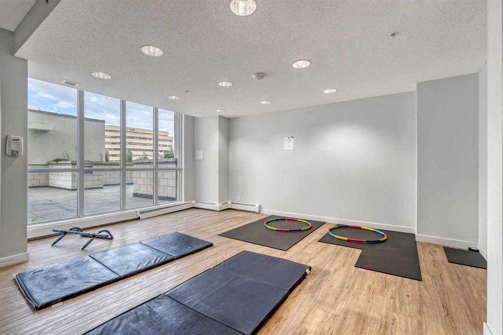 Riverfront Pointe offers a full gym, an amenities room, and an outdoor patio, along with onsite security, bicycle storage, and secure heated underground parking including visitor parking. The TITLED parking stall is conveniently located near the elevator, and a second stall is available for rent or purchase. Onsite, a small garden area adds to the welcoming ambiance of the complex.