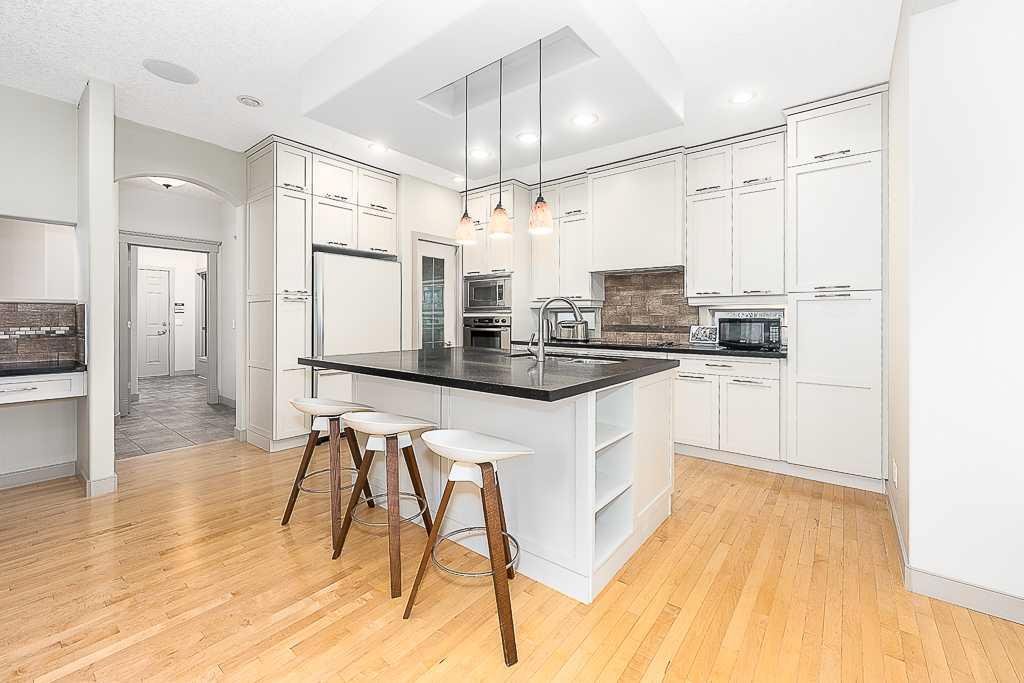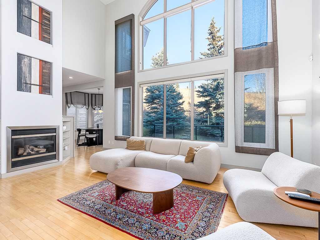 Discover an exquisite 5 bedroom family residence in the heart of Discovery Ridge, perfectly positioned with direct, gated access to a serene park / green space and just moments from the natural beauty of Griffith Woods park. This distinguished former show home, spanning over 4,200 square feet of meticulously crafted living space, is brimming with luxurious upgrades and thoughtful details, ideal for those seeking elegance and functionality. Step inside to a breathtaking open-concept main floor, where a soaring 20-foot ceiling in the central living area creates a grand ambiance. A striking two-story fireplace, flanked by custom built-in cabinetry and a stone waterfall feature, serves as the heart of the home. The gourmet kitchen is a chef’s dream, boasting a large central island with a breakfast bar, sleek granite countertops, premium stainless steel appliances, a spacious walk-in pantry, a dedicated coffee station, and stylish glass-accented cabinetry. Adjacent, a formal dining room accommodates gatherings of any size, while a versatile den near the front entrance offers a quiet workspace. The expansive, fully finished double attached garage connects to a generous laundry room with a sink and upper cabinetry for added convenience. Ascend the elegant staircase to the upper level, where a bright, open loft with built-in cabinetry overlooks the park and main living area. The luxurious owner’s suite is a true retreat, featuring a cozy sitting area, a second fireplace with sophisticated built-ins, and a spa-inspired 5-piece ensuite with dual sinks, a jetted tub, an oversized steam-ready shower, and a large walk-in closet. Two additional well-appointed bedrooms and a full bathroom complete this level. The fully finished lower level is designed for entertainment and relaxation, offering a spacious recreation room with ample space for a home theatre or billiards area, two large bedrooms, a full bathroom, and a versatile flex room with abundant storage. This home is adorned with premium upgrades, including air conditioning (Upper and lower separately controlled), 2 brand new furnaces, gleaming hardwood floors, 9-foot ceilings with knock-down stipple, integrated sound system with individual room controls, iron railings, bull-nosed stairs, and designer lighting. Additional highlights include a fiber-optic upgrade, central air conditioning, a barrelled ceiling design, custom window treatments, and a striking stone and stucco exterior. Outside, an exposed aggregate driveway and walkway lead to a private rear deck with sleek glass and aluminum railings, perfect for enjoying the peaceful surroundings. Impeccably maintained and ideally located near parks, pathways, and Discovery Ridge amenities, this exceptional residence offers unmatched quality and value. A rare opportunity, schedule your private tour today!