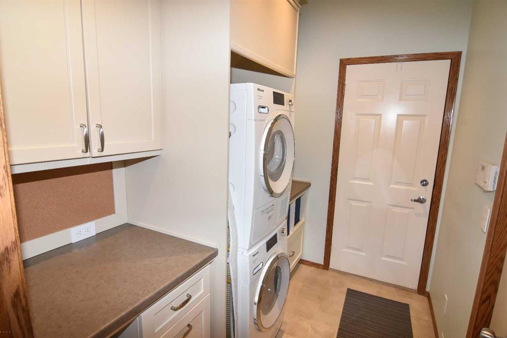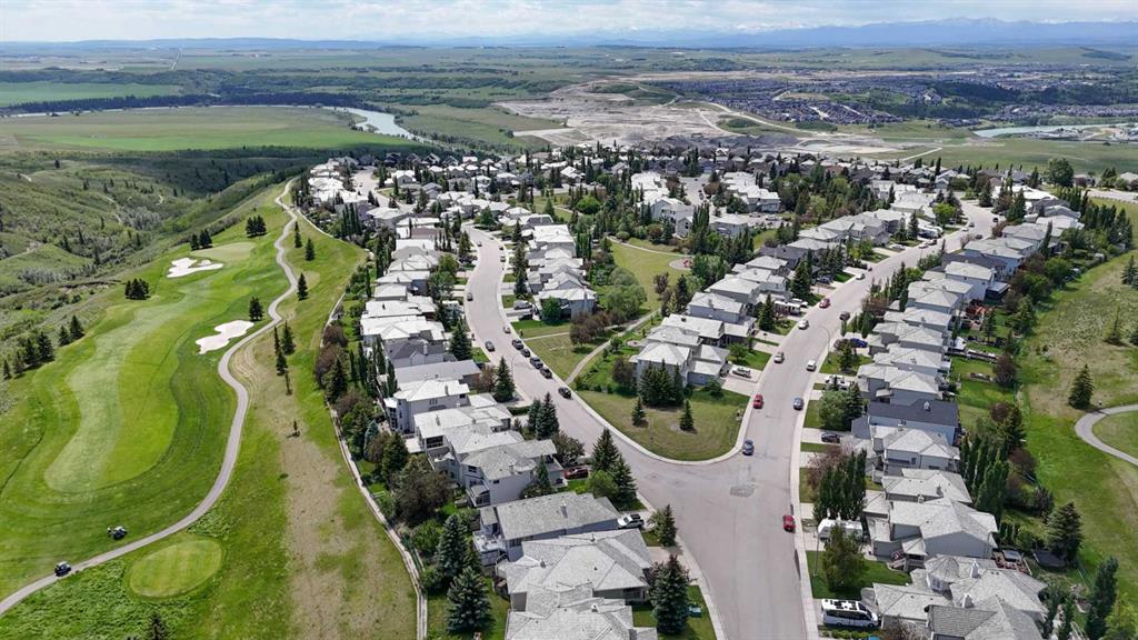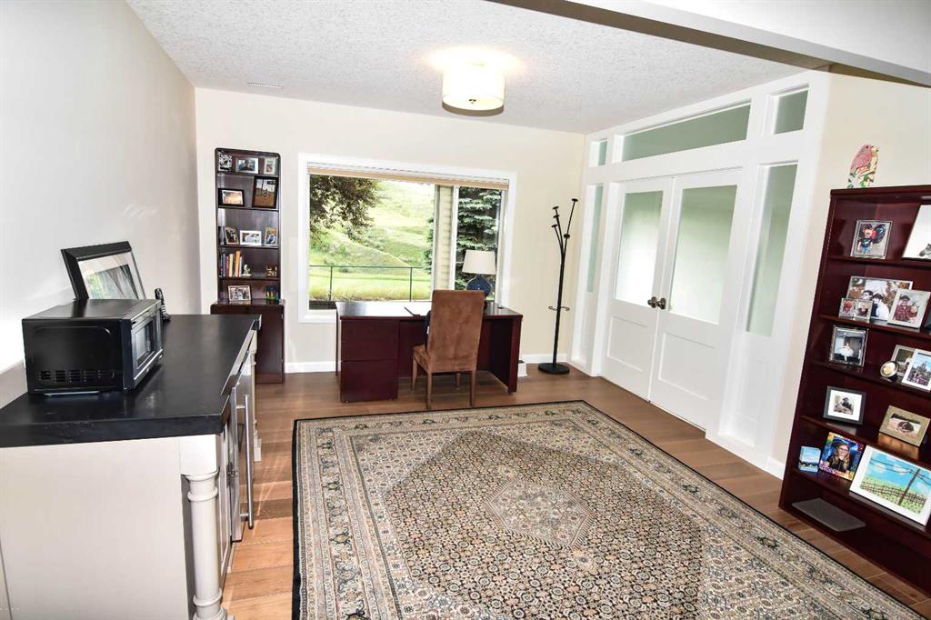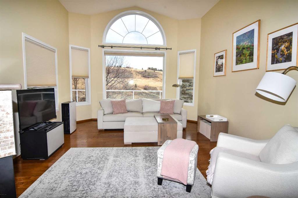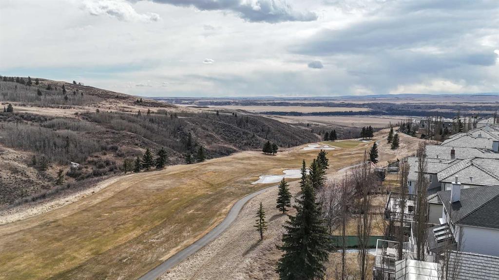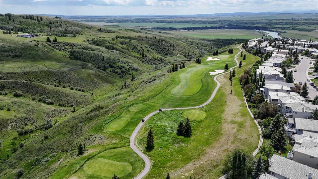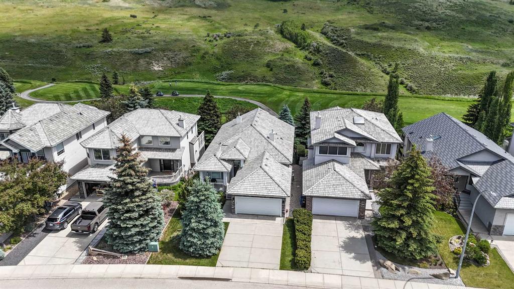 Perfectly positioned with untouched wilderness and the 13th hole of The Links of Gleneagles behind, this home captures breathtaking sunrises and ever-changing views—the perfect spot for your morning coffee! Step inside to find a warm, inviting layout with vaulted ceilings, gleaming hardwood floors, and a striking 3-way fireplace. Featuring a grand island with quartz countertops, stainless steel appliances, ample cabinetry, and a pantry, the kitchen becomes the perfect spot for great conversations. Step out onto the upper deck to soak in the scenery – it never gets old. The primary suite offers a private retreat, with a jetted tub, separate shower, and walk-in closet. A second bedroom, an updated 4-piece bath and a front office/den complete the main floor, along with a NEW Miele washer/dryer team. The finished walkout adds versatility with two large bedrooms, a 3-piece bath and a bright recreation room that opens to the beautifully professionally landscaped yard, complete with patio and low-voltage lighting. Additional highlights include a heated epoxy garage, new garage door, Hunter Douglas window coverings, Central A/C, new dishwasher and microwave, and Suncoast retractable outdoor screens (upper and lower). Just minutes to Cochrane and a quick jaunt to Calgary, this immaculate Talisman-built bungalow will not disappoint. Welcome to 91 Gleneagles Terrace – your new address! For your private showing, reach out to your favourite REALTOR®
