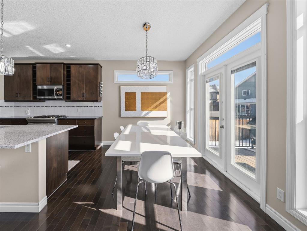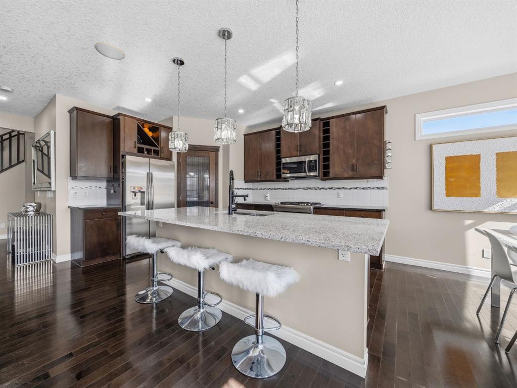 Style, space, and sophistication perfectly describe this exquisite home. The moment you enter, a spectacular view opens before you. The spacious foyer features an open to above ceiling, leading into a bright main floor with high ceilings, hardwood floors and numerous windows that bathe the home in natural light. Elegant wooden railings lead to the second floor, while a generously sized flex area offers the versatility to suit any family’s needs. The kitchen is a chef’s delight, featuring dark stained cabinetry, a gas range, quartz countertops, a walk through pantry and a breakfast bar for casual dining. It flows seamlessly into the spacious dining area and inviting living room, both perfectly positioned along the back of the home where an impressive wall of windows captures sunlight throughout the day. The living room serves as a cozy focal point, centered around a beautiful gas fireplace. From the dining area, glass doors open onto the expansive southeast facing deck, overlooking the sprawling backyard, an ideal setting for outdoor dining, entertaining guests or simply enjoying the sunshine and open space. Upstairs, the thoughtful layout continues with a blend of comfort and functionality. Across from the stairwell, a charming seating nook with a built-in bench and an elegant arched window creates a perfect reading escape. Just beside it, a compact workspace provides a practical area for studying or working from home, while a conveniently located laundry room adds everyday ease. This level also features two generously sized bedrooms, one of which is highlighted by an oversized window that fills the room with natural light, along with an additional 4 piece bathroom. At the center of the upper floor is a spacious bonus room overlooking the soaring open to above foyer, offering a bright and airy gathering space for the whole family. The impressive primary suite serves as a private retreat, complete with its own gas fireplace. The spa-inspired ensuite features his-and-hers vanities with quartz countertops, a dedicated makeup station, a corner soaker tub, and a large walk-in closet. The fully finished basement expands the living space further, offering a large recreation room perfect for movie nights or a home gym, along with an additional bedroom and full bathroom for guests or extended family. The home is equipped with a built-in sound system with in-ceiling and outdoor speakers, plus a tankless water heater installed just three years ago. Ideally situated, this home is within walking distance of Holy Child School (K–9) and close to Ron Southern School (K–6), making the morning routine a breeze for families. A short drive brings you to the Somerset LRT Station, the YMCA, Spruce Meadows, and Shawnessy Plaza, with quick access to Stoney Trail for an easy commute.