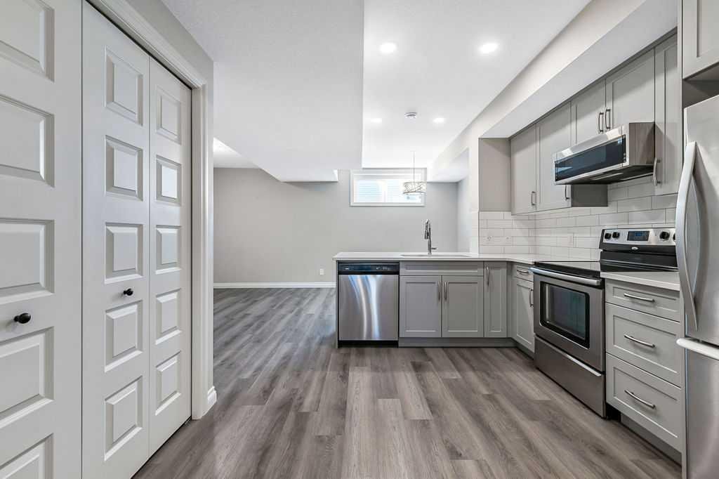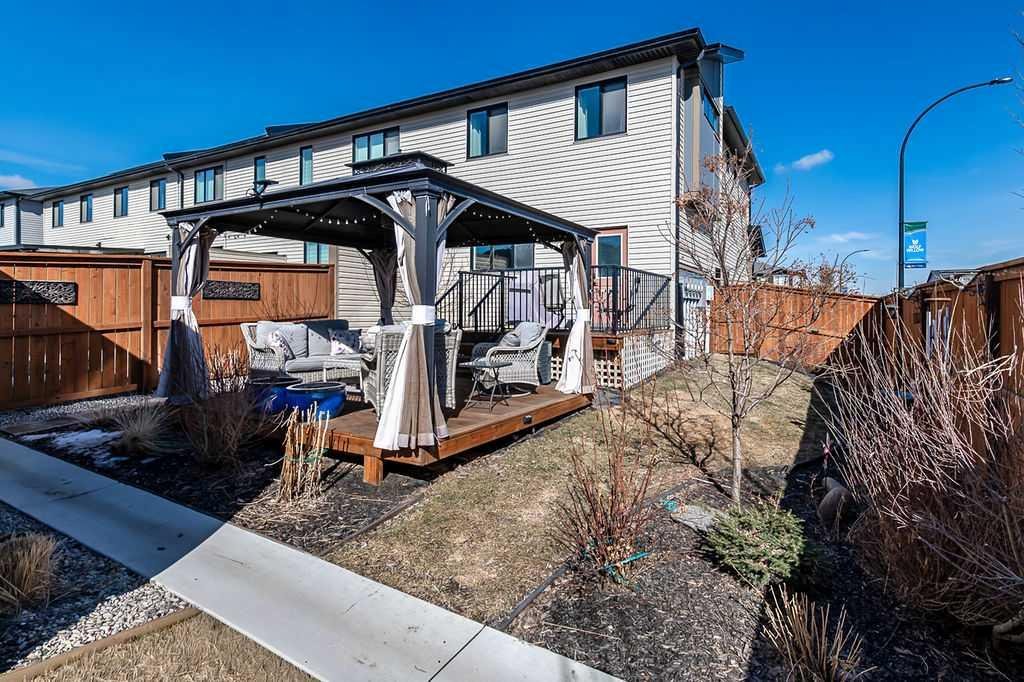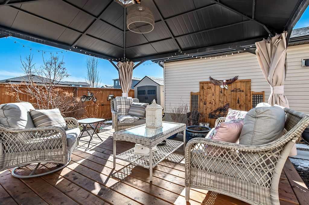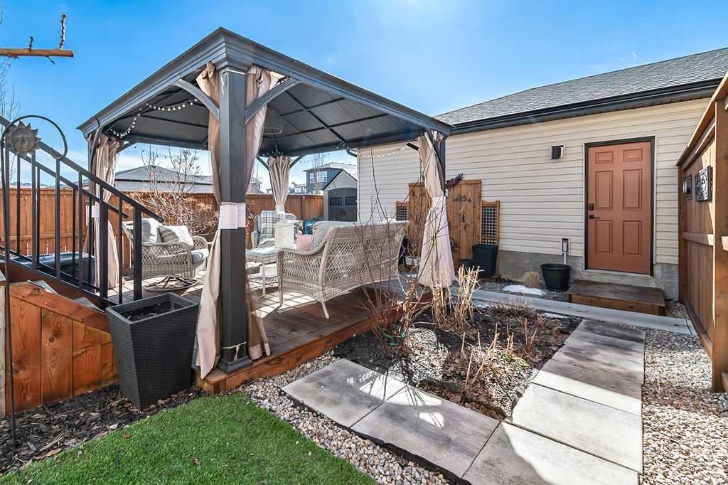 Welcome home to this beautifully maintained property, gently lived in and perfectly positioned on a large corner lot with incredible outdoor space to enjoy all summer long. The fully fenced backyard is both functional and inviting, featuring an upper deck, a private lower patio with gazebo, and a large storage shed, creating the perfect setting for relaxing or entertaining. From the moment you arrive, the curb appeal draws you in. Step inside and you will immediately appreciate the bright, open floor plan designed for everyday living and hosting alike. The spacious living room easily accommodates a large sectional with room to spare for additional seating. The dining area is generous in size and flows seamlessly into the stunning kitchen, complete with quartz countertops, a beautiful backsplash, ample cabinet and counter space, a pantry, and a large island that naturally becomes the heart of the home. At the back, the mud room offers excellent flexibility, whether you need space for a freezer or want to create a custom locker system. A tucked away 2 piece bathroom adds convenience, and both front and back entrances feature generous closets for storage. Upstairs, you will find the first of two laundry areas conveniently located in its own room. Two well sized secondary bedrooms provide plenty of space for family or guests, while the primary bedroom is a true retreat with a large walk-in closet and a 4 piece ensuite. The fully legal basement suite is an incredible bonus, ideal for extended family, guests, or a roommate. With its own private entrance and deck, this space is just as beautifully finished as the main home. It offers a bright and open layout with a spacious living and dining area, a stylish kitchen with quartz counters and stainless steel appliances, a full bathroom, and a comfortable bedroom. There is also a cleverly designed under stair storage room and a laundry closet with additional storage. The double garage provides room for two vehicles or extra storage. Additional features include air conditioning and upgraded window coverings, including an electronic blind in the living room. Located just steps from a new huge playground and the Bow River, with miles of walking paths right outside your front door, this home offers an unbeatable place to start out or raise a family. Move in ready and thoughtfully designed, this is a rare opportunity, in this price range, to own a home that truly has it all.