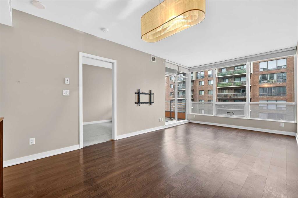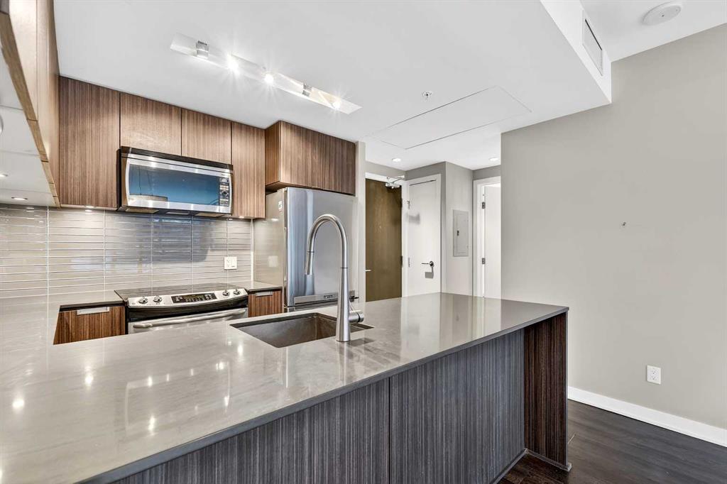 This stylish 1-bedroom condo in the highly regarded Calla building offers an exceptional urban lifestyle in the heart of downtown Calgary. Ideally located directly across from Beaulieu Gardens and the historic Lougheed House, the building provides a peaceful, park-adjacent setting while remaining just steps from Calgary’s downtown core, Stampede Grounds, public transit, dining, shopping, and nightlife. The Calla is a well-managed, concrete-constructed building known for its quality and quiet living environment. Residents enjoy an elegant lobby and an impressive selection of amenities, including a fully equipped fitness centre, yoga studio, concierge service, guest suite, and secure bike storage. Inside, the condo features 9-foot ceilings, central air conditioning, and floor-to-ceiling south-facing windows that flood the space with natural light and showcase beautiful city views, including front-row views of the Calgary Stampede fireworks. The modern kitchen is thoughtfully designed with full-height cabinetry, quartz countertops, stainless steel appliances, and a peninsula with breakfast bar, offering both functionality and style. The kitchen flows seamlessly into the dining area and oversized living room, creating an inviting space for everyday living and entertaining. The living room opens onto a large private balcony, ideal for summer barbecues, outdoor dining, or relaxing while taking in the urban skyline. The spacious bedroom continues the bright, open feel with large windows and dual closets providing ample storage. A well-appointed 4-piece bathroom features contemporary finishes and low-flush plumbing. Additional conveniences include in-suite laundry, a titled underground parking stall, and an assigned storage locker. This property presents an outstanding opportunity for low-maintenance, upscale downtown living in one of Calgary’s most desirable locations.