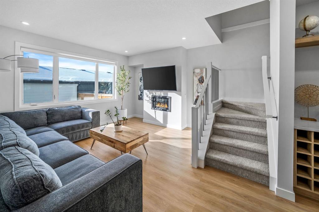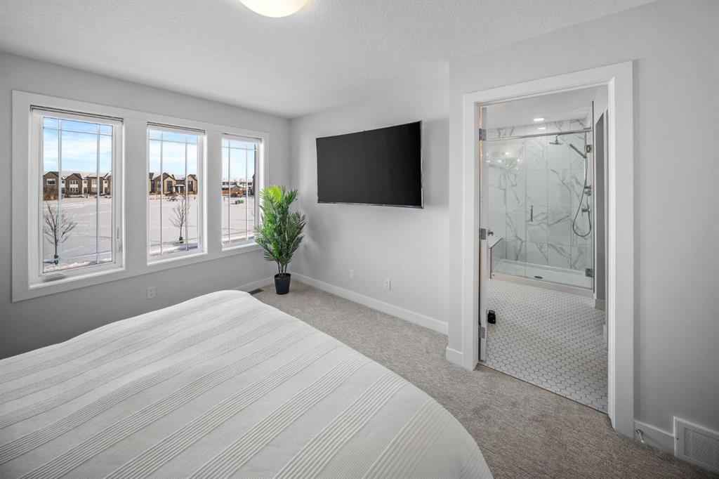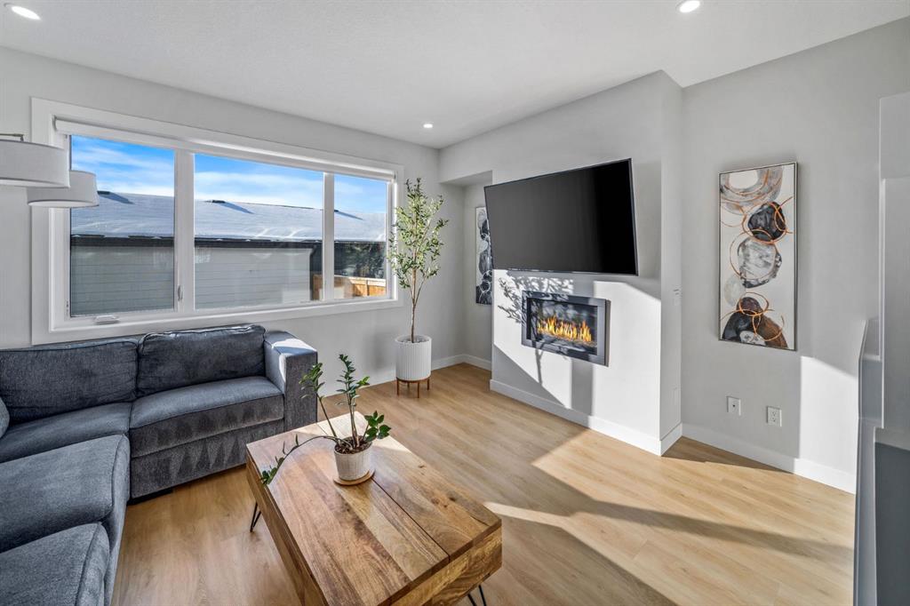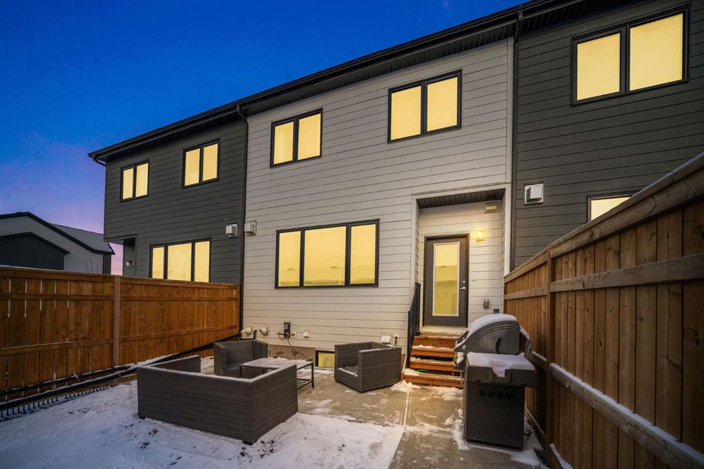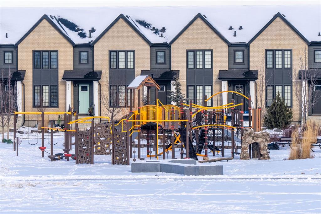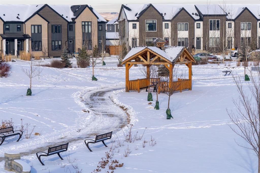 Welcome to this luxury townhome in the heart of Harmony, where refined design meets effortless, resort style living. Thoughtfully curated with high-quality finishings throughout, this home offers an elevated everyday experience. The open-concept main level is anchored by a stunning kitchen featuring waterfall countertops, Bosch appliances, full-height cabinetry, generous pantry space and a beautifully integrated built-in bar with wine rack and coffee station, perfect for entertaining or quiet mornings. A gas fireplace adds warmth and sophistication to the living space, while motorized shades provide comfort and privacy at the touch of a button. Step outside to your south facing, low-maintenance backyard, complete with a gas line on a concrete pad, ideal for outdoor cooking. The oversized double garage offers added privacy and ample storage. Upstairs, the primary suite is a true retreat with a large bedroom, walk-in closet with custom built-ins and a spa-inspired ensuite featuring a bench in the shower and a gorgeous standalone soaker tub. Upstairs laundry is thoughtfully designed with countertops and shelving for everyday convenience. The mudroom with built-in cubbies keeps life organized and clutter-free. Perfectly positioned across from open fields, a toboggan hill, playground and picnic area, this home enjoys unobstructed park views and a strong sense of connection to nature. Located in the vibrant lake community of Harmony, residents enjoy access to pathways, parks, recreational amenities and the renowned Mickelson National Golf Club. Just a short drive to Canmore and the Rocky Mountains, with easy access to downtown Calgary, Harmony offers the ideal balance of outdoor adventure and urban convenience. A rare opportunity to own a luxury townhome in one of Calgary’s most sought-after communities where lifestyle, location and design align perfectly.