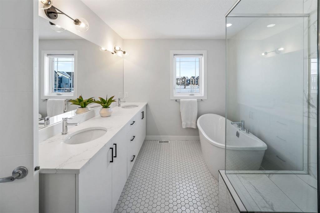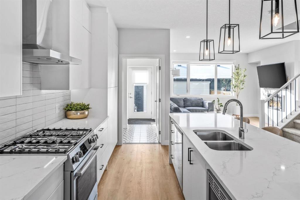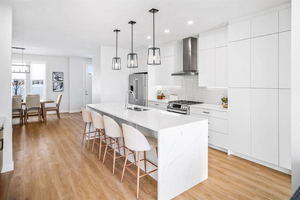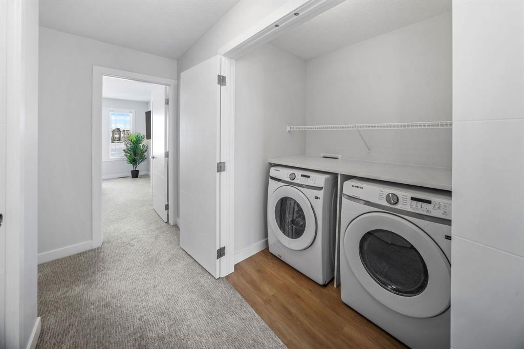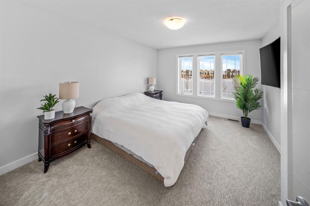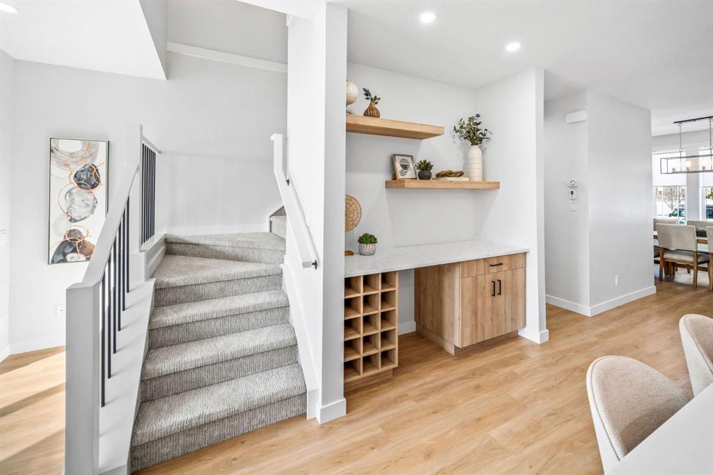 Welcome to this luxury townhome in the heart of Harmony, where refined design meets effortless, resort style living. Thoughtfully curated with high-quality finishings throughout, this home offers an elevated everyday experience. The open-concept main level is anchored by a stunning kitchen featuring waterfall countertops, Bosch appliances, full-height cabinetry, generous pantry space and a beautifully integrated built-in bar with wine rack and coffee station, perfect for entertaining or quiet mornings. A gas fireplace adds warmth and sophistication to the living space, while motorized shades provide comfort and privacy at the touch of a button. Step outside to your south facing, low-maintenance backyard, complete with a gas line on a concrete pad, ideal for outdoor cooking. The oversized double garage offers added privacy and ample storage. Upstairs, the primary suite is a true retreat with a large bedroom, walk-in closet with custom built-ins and a spa-inspired ensuite featuring a bench in the shower and a gorgeous standalone soaker tub. Upstairs laundry is thoughtfully designed with countertops and shelving for everyday convenience. The mudroom with built-in cubbies keeps life organized and clutter-free. Perfectly positioned across from open fields, a toboggan hill, playground and picnic area, this home enjoys unobstructed park views and a strong sense of connection to nature. Located in the vibrant lake community of Harmony, residents enjoy access to pathways, parks, recreational amenities and the renowned Mickelson National Golf Club. Just a short drive to Canmore and the Rocky Mountains, with easy access to downtown Calgary, Harmony offers the ideal balance of outdoor adventure and urban convenience. A rare opportunity to own a luxury townhome in one of Calgary’s most sought-after communities where lifestyle, location and design align perfectly.