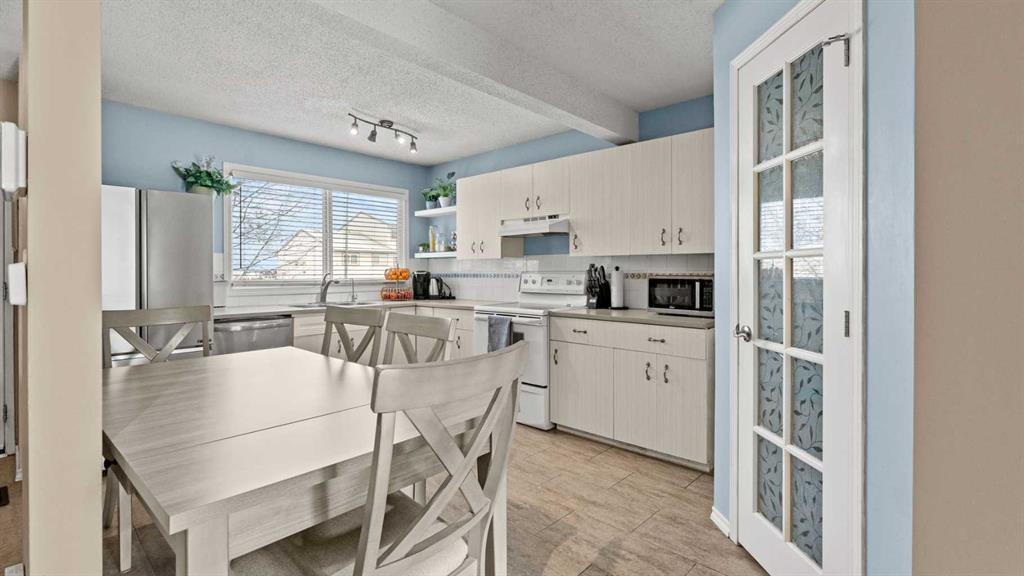 Welcome to this move-in-ready townhome in Marlborough Park! Enjoy an open-concept main level filled with natural light, featuring a spacious kitchen with plenty of cabinetry, large pantry and tons of counter space, a generous living room area with sliding patio doors leading to a private, low-maintenance yard and an open deck area for BBQ’s and lounging. Upstairs holds three bedrooms and a full 4-piece bath. The partially finished basement adds valuable living space with a second 4-piece bathroom, laundry, and a flexible area for a home office, rec room, or storage. Ideally located near the complex entrance, this property comes with 2 assigned parking stalls right in front of your unit entrance and all new appliances in the last year (fridge, stove, dishwasher, microwave, washer and dryer).