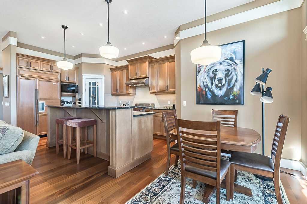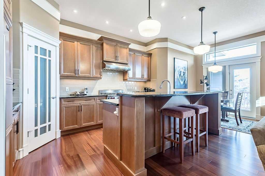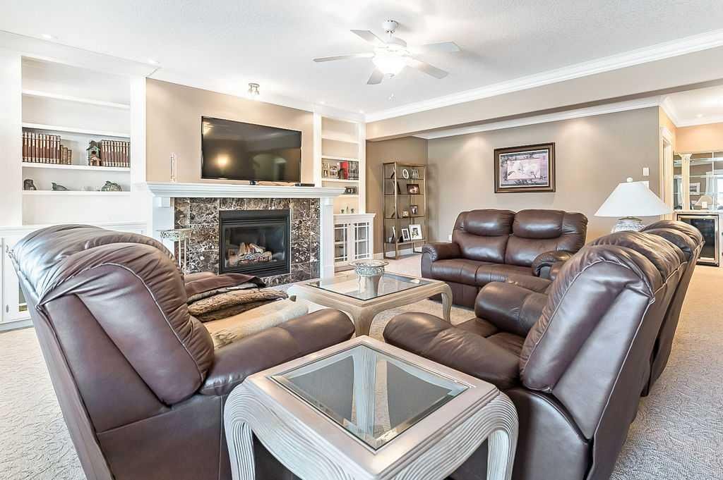 Luxury semi-detached VILLA BUNGALOW with a fully developed walkout basement, perfectly located backing onto a serene, landscaped greenspace in an exclusive and sought after 55+ community. Every detail of this residence has been thoughtfully planned to give a sophisticated blend of elegance, comfort and effortless living. The open concept design is highlighted by walls of oversized windows and transoms that rise nearly to the ceiling, flooding the home with natural light and offering gorgeous outdoor views. The kitchen is a showpiece, appointed with a premium SUB-ZERO FRIDGE, PROFESSIONAL GRADE WOLF STOVE AND BOSCH DISHWASHER. Rich granite countertops, extensive custom cabinetry and a generous walk in pantry complete this exceptional space. Step directly onto the expansive deck to enjoy peaceful mornings or elegant evenings overlooking the beautifully landscaped greenspace. The primary suite is a private sanctuary, featuring a vaulted ceiling and a spa inspired ensuite with a large sized double vanity, soaker tub and an oversized glass shower. The professionally finished walkout lower level elevates the home’s living space with a dramatic fireplace feature wall, two spacious bedrooms, a full four piece bath, in floor heating and garden doors that open to a covered patio — ideal for seamless indoor-outdoor living. A charming front verandah is the perfect space to relax and enjoy the peace and quiet of this exceptional community. This remarkable villa is an opportunity to own an UPSCALE RESIDENCE WITH PREMIUM FINISHES and an uncompromising lifestyle. NOT A CONDO – NO CONDO FEES (Homeowners Association).