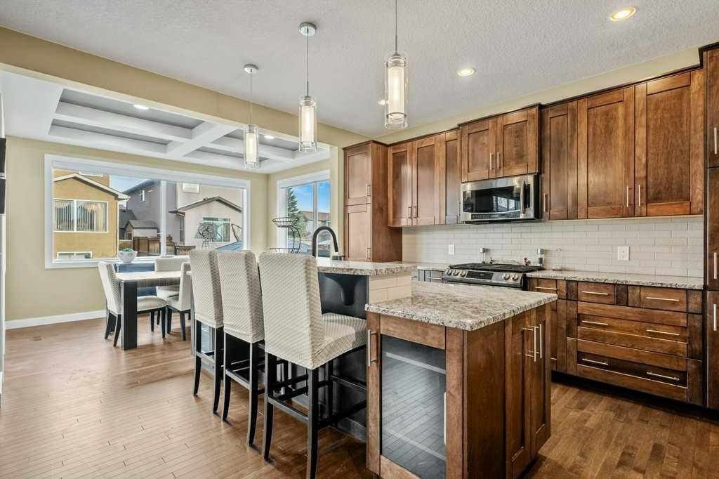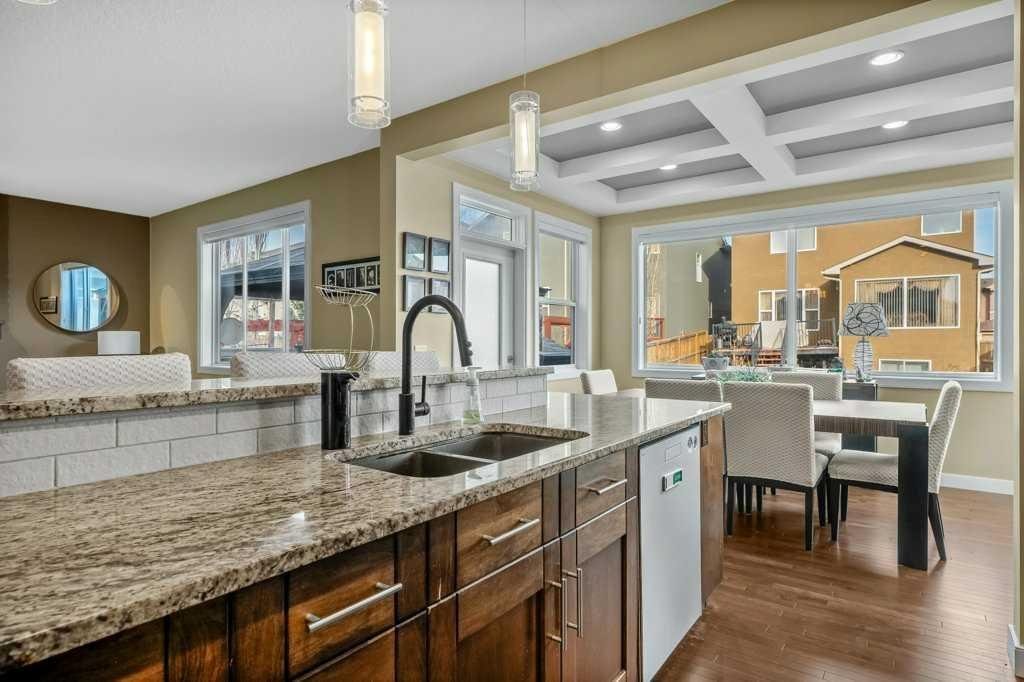 Discover this gorgeous, tastefully updated original owner home in the desirable SW community of Evergreen. Offering 2,469 sqft plus a 1,057 sqft fully developed basement of highly functional living space that will accommodate multiple family configurations. The main floor boasts a superb open great room plan and features 9’ ceilings and exquisite updated espresso hardwood floors. Custom built-in cabinetry is found throughout this beautiful home. The gourmet’s kitchen is fully equipped with ample amounts of shaker style cabinetry, full tile backsplash and rich granite countertops. Updated stainless steel appliances are highlighted by the gas stove. Oversized central island with raised breakfast bar is ideal for casual dining. The large adjacent dining area is delineated by a classic coffered ceiling treatment. The massive living area just off the kitchen is completed by a focal point floor-to-ceiling stone tiled fireplace. French doors open into a versatile office that contains a custom built-in perimeter desk. Great for a home office, crafts or homework. A family sized rear mudroom with enough custom built-ins for everyone’s shoes and coats not to be left on the floor. The walkthrough pantry connects the mudroom and kitchen. Upstairs, you’ll find a spacious bonus room with vaulted ceiling, a beautifully renovated 4-piece bathroom, a convenient, full sized laundry room, and 3 generously sized bedrooms. The oversized primary suite is a true retreat, complete with a lavishly renovated 5-piece ensuite bath featuring a free-standing soaker tub, separate tile and glass shower, custom dual mirrors and dual sinks plus a quartz topped vanity. A large walk-in closet with wood organizers completes the space. The fully finished lower level is designed for comfort and entertainment. You will be spending a lot of time in the enormous family/rec room watching the big game or blockbuster movies in 7.1 surround sound. It also includes a 4th bedroom, another updated bathroom plus a dedicated gym area that can be closed off with a custom folding nano style door system. This home is a must-see for those seeking a spacious, updated, estate style home that ideal home for entertaining and large family gatherings. Additional updated include roof (2024), furnace (2020) water tank (2017), hardwood floor (2024) carpet and underlay upstairs (2025). Minutes to breathtaking Fish Creek Provincial Park, schools, shopping, entertainment and easy access to major roadways. Nothing to do but move in and enjoy!