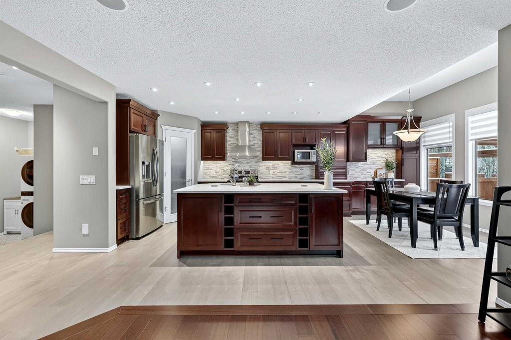 **OPEN HOUSE – Saturday, January 31 & Sunday, February 1 – 1PM-4PM*** Welcome to this well cared for and upgraded family home in Panorama Hills! Offering over 2,900 sq ft of developed living space designed for comfort, entertaining, and everyday living. The bright, open concept main floor features gleaming hardwood flooring throughout and is filled with natural light. A main floor office, updated 2-piece bathroom, and laundry area with sink add functionality for busy households. The heart of the home is the $50,000 fully renovated kitchen, complete with custom cherry wood cabinetry, crisp quartz countertops, tile backsplash, pantry, large center island with undermount sink, and upgraded stainless steel appliances: including a dual oven and water-dispensing refrigerator. The kitchen opens to the dining area with extended cabinetry, 10-foot ceilings and a garden door leading to a newly built $55,000 Hawaiian themed two-tiered composite deck with custom wood pergolas, creating an ideal outdoor entertaining space! The large living room is anchored by a floor-to-ceiling stone faced fireplace and features a large picture window overlooking the sunny SW backyard. Upstairs the huge, vaulted bonus room offers a flexible space for a kids play area, games room, or movie room! The spacious primary bedroom features a spa-inspired ensuite with tile flooring, soaker tub, seperate shower, and a walk-in closet with custom organizers. Two additional well-sized bedrooms and another full 4-piece bathroom complete the upper level. The fully finished basement expands the living space with a large recreation room with full wet bar, spacious fourth bedroom, and full bathroom, perfect for guests or entertaining! Additional highlights include central air conditioning for those hot summer days and an oversized 21.5′ x 21.5’ double attached garage. Prime location on a quiet cul-de-sac adjacent to the ravine pathways and surrounded by parks, schools, shopping, and transit! Quick access in and out and to Stoney Trail ring road, making commuting a breeze. This move-in-ready home offers exceptional value in one of NW Calgary’s most established and sought after communities.