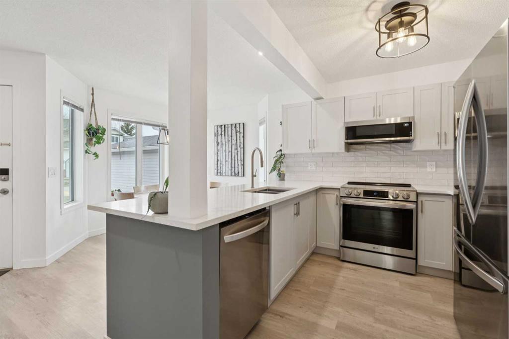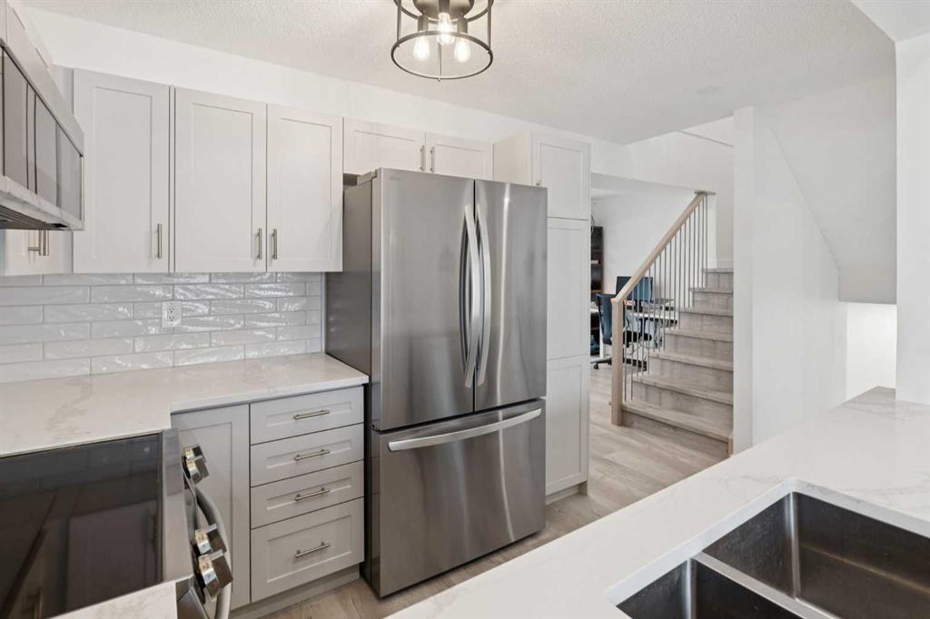 Welcome to this beautifully maintained duplex in the heart of Scenic Acres, where comfort, style, and convenience come together seamlessly. From the moment you arrive, the pride of ownership is evident—this is a home that truly shines. Step inside to discover a bright and inviting main level, featuring durable Luxury Vinyl flooring that flows effortlessly throughout both the main and upper floors, creating a cohesive and modern feel. The living room offers a warm and welcoming atmosphere, centered around a cozy gas fireplace—perfect for relaxing evenings or hosting guests. The upgraded appliances and stylish light fixtures elevate the space, adding a touch of contemporary elegance to everyday living. Upstairs, you’ll find three well-appointed bedrooms, including a spacious primary retreat complete with a walk-in closet and a private 3-piece ensuite. An additional 4-piece bathroom ensures comfort and functionality for family or guests alike. The fully finished basement expands your living space with a massive rec room—ideal for movie nights, a home gym, or a play area—along with a dedicated laundry room and plenty of storage. An attached single garage adds everyday convenience, while the unbeatable location puts you just minutes from Crowfoot Crossing, the LRT station, shopping, restaurants, and more. NEW FURNACE AND HOT WATER TANK! A fantastic opportunity to own a move-in ready home in a prime location—don’t miss it!