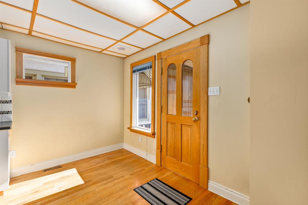 Inside, the main floor features 9-foot ceilings and solid hardwood flooring that continues throughout both the main and upper levels. The layout includes a spacious living room, a formal dining area, and a bright kitchen with a cozy breakfast nook. Upstairs, you’ll find three bedrooms and a full 4-piece bathroom.
