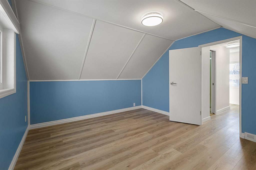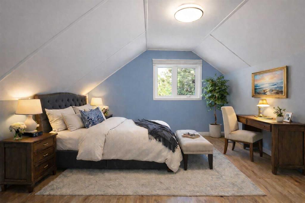 If you’re looking for an affordable home in an up and coming neighborhood, with a huge yard, then you’ll fall in Love with this Charming Character home! The location appeals to a wide range of buyers who value convenience, long term investment potential and the flexibility to shape the property to their needs. Located in a sought after mature and peaceful location, it is nested between major access roads and awaits a buyer that appreciates the immediate livability of the home with the option to build future equity through renovation or it’s income generation potential. You’ll find the cozy primary bedroom on the upper floor with a convenient 3 piece ensuite. It is a sunny retreat that’s been freshly painted, and has a large built in closet (doors are available). The bright and sunny main level has hardwood floors in the huge living room and the welcoming foyer area. Glass block windows to the south provide beautiful refracted light. All of the Windows and front door were replaced in 2018 and the west facing windows are Triple pane! A large kitchen with an dining area is at the rear of the home with newer appliances (2020), and updated flooring. The 2nd bedroom is off of the kitchen, overlooks the huge yard and is ideal for a home office/den. An updated and modern 4 piece bathroom is conveniently tucked away off of the kitchen. The main level has a sunny rear porch (mud room) that opens onto the kitchen while keeping coats, bikes, golf clubs etc securely covered inside, but is not included in the total sq feet due to measurement rules. In the lower level you’ll find the laundry room, storage and a family room area. NOTE major updates: Hot water tank 2024, New windows 2018, flooring upstairs and kitchen, toilets in bathrooms, appliances 2020, lighting, Weeping tiles and new sump pump 2020. The single front drive garage, attached covered carport and front driveway provide tons of parking! The fully fenced lot offers a huge yard for BBQ’s, family fun, pets, or perhaps another large garage if desired.