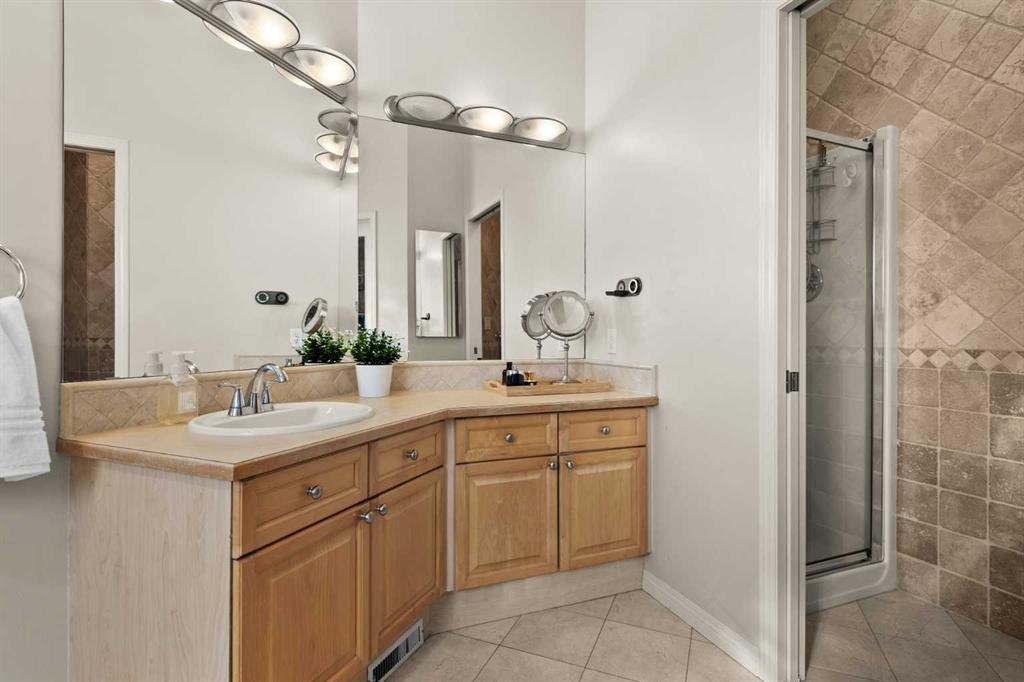 **OPEN HOUSE SUN MAR 8 from 2-4 PM** Rare opportunity to own a beautifully designed walk-out bungalow on an expansive, tree-lined pie-shaped lot (over 630 m2) with a coveted southwest-facing backyard. Offering nearly 3,000 sqft of developed living space, this thoughtfully designed home blends exceptional functionality, natural light, and effortless everyday living. Impressive curb appeal welcomes you with a heated, attached double garage and inviting front entry. The elevated main level spans approximately 1,559 sqft and showcases vaulted ceilings, rich Brazilian cherry hardwood flooring, and a bright open-concept layout. The spacious living room, anchored by a gas fireplace, flows seamlessly into the kitchen and breakfast nook, creating a warm and connected space ideal for both entertaining and daily life. The well-appointed kitchen features Thermador stainless steel appliances, a 5-burner gas range, maple cabinetry, granite countertops, a generous corner pantry, and a sit-up island. A separate formal dining room with built-in hutch niche provides flexibility for hosting and special occasions. The primary retreat offers new plush carpeting, a large west-facing window, and a striking three-way gas fireplace shared with the spa-inspired ensuite, complete with jetted soaker tub, separate shower, and walk-in closet. A second bedroom or ideal home office, full bathroom, and convenient laundry/mudroom with Electrolux washer and new dryer (2025) and direct garage access complete the main level. The heated garage includes epoxy flooring, built-in shelving, and a workbench. Additional features of this home include central air conditioning and a new roof (2020). The fully finished walk-out level expands your living space with a large recreation area, family room with gas fireplace, and custom solid maple entertainment built-ins. Oversized windows and patio sliding doors allow natural light to pour in. Two additional versatile bedrooms provide space ideal for guests, teens, or fitness room and are privately positioned alongside a full bathroom with heated floors. A spacious mechanical with new hot water tank (2024), and storage room adds valuable functionality. Step outside to your private Southwest-facing backyard oasis on this rare oversized pie lot, complete with mature trees, planter boxes, multizone irrigation, expansive patio, a standalone wood-burning fireplace, and hot tub (serviced December 2025). The setting offers both privacy and exceptional space for summer entertaining. Situated on a quiet cul-de-sac just steps from pathways, parks, shopping, and amenities, residents also enjoy access to the Cranston Residents Association with year-round programs, events, tennis courts, outdoor rink, and community facilities. This home presents a lifestyle opportunity rarely available, ideal for those seeking the ease of single-level living with additional room for family and guests, or downsizers who still value space for entertaining. Book your private showing today!