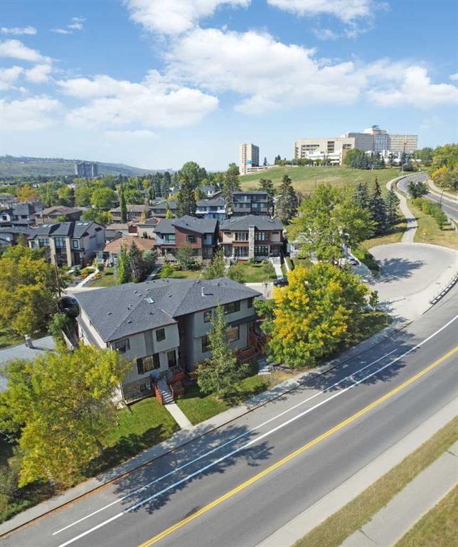 Upstairs, 3 large bedrooms, 2 full baths, convenient laundry room, and HANDCRAFTED BARN DOOR features await. The generous primary suite has a walk-in closet, and a handcrafted barn door leading to a luxurious five-piece ensuite with DUAL SINKS, a FREESTANDING TUB, tiled glass STEAM SHOWER, and heated travertine tile floors. Fully developed lower level includes a recreation room with flex/gym space, 2-piece bath, and a tiled mudroom/foyer offering direct access to the HEATED ATTACHED DOUBLE GARAGE – an absolute dream in the cold winter months. Additional parking for 2 more vehicles can be found on the driveway, conveniently roughed in for a snow-melt system. Despite its mountain vibes, this home is perfectly located just minutes from the Bow River Pathway, the Foothills and Childrens Hospital, and downtown. Numerous transit options, the park pathway system, and quick access to main arteries make commuting to work and the mountains a breeze. VIEW MULTIMEDIA LINK FOR FULL DETAILS!