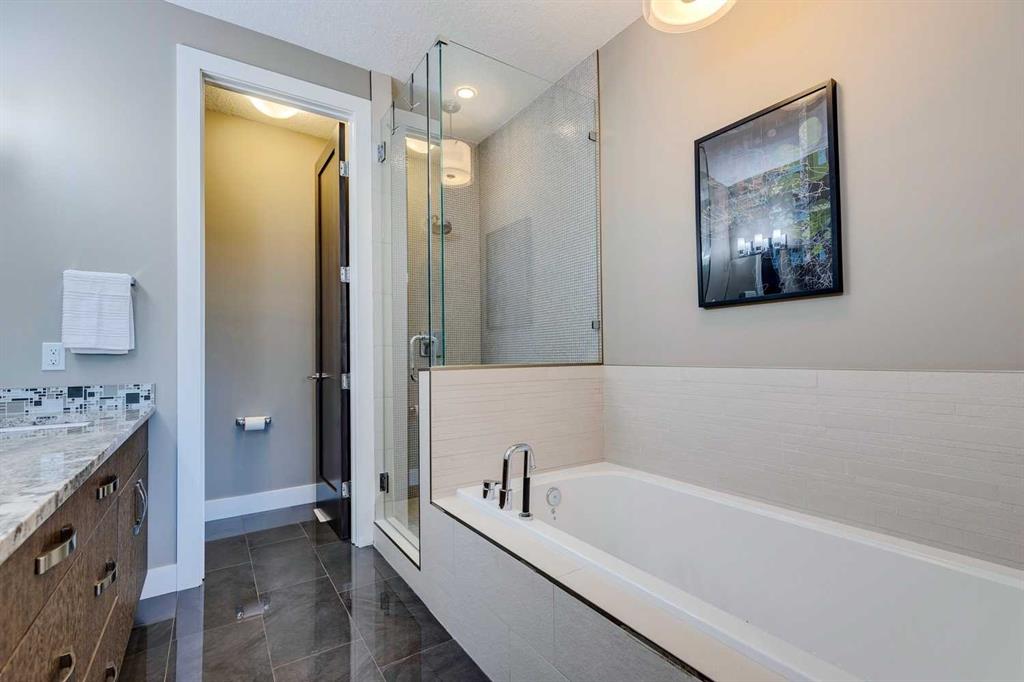OPEN HOUSE SUN, JAN 18 @ 1-3PM: Located in the heart of the highly sought-after inner-city community of Parkdale, this beautiful two-storey home offers over 2,900 sqft of total living space and an exceptional blend of modern design, thoughtful upgrades, and an unbeatable location just steps down the hill from Foothills Hospital, ideal for anyone working at the hospital and for those seeking a walkable, connected inner-city lifestyle. Freshly painted throughout, the main floor features impressive 10’ ceilings, brand-new flooring, a bright flex room at the front of the house (office, secondary living space, music room, formal dining room, etc.), a convenient half bathroom with granite counters, and a spacious living room anchored by a cozy gas fireplace and in-ceiling speakers. The chef-inspired kitchen is both stunning and functional, boasting granite countertops, ceiling-height cabinetry, a huge walk-in pantry, gas stove, garburator, Bosch dishwasher (5 years old), in-wall oven, and an upgraded kitchen faucet (3 years old), flowing seamlessly into the dining area for effortless entertaining. Upstairs offers 9’ ceilings, 3 generous bedrooms, 2 full bathrooms, and an upper laundry room with granite counters and upgraded washer and dryer (2 years old). The primary bedroom impresses with vaulted ceilings, a walk-in closet, and views of the off-leash dog park and city centre, complemented by a luxurious ensuite featuring a jetted soaker tub, large tiled shower, dual sinks, granite counters, tile flooring, and built-in speakers. The fully developed basement continues the high-quality finish with 9’ ceilings, a spacious recreation room with wet bar including granite counters, built-in wine rack and mini fridge, a bedroom with walk-in closet, and a full bathroom with granite counters, tub/shower combination, and a new toilet installed in 2025. Additional highlights include in-ceiling speakers throughout the home, central air conditioning, cedar siding, a new furnace installed in August 2025, and a double detached garage off the back lane. The fully fenced backyard is perfectly designed for low-maintenance enjoyment, featuring aggregate concrete (also featured in the front of the property), a side dog run, and a gas BBQ hookup, while the surrounding Parkdale community offers exceptional access to parks, recreation facilities, an outdoor skating rink in winter, excellent schools, the Bow River and its extensive pathway system, downtown Calgary, Kensington, and quick access west to the mountains, making this an outstanding opportunity to own a move-in-ready home in one of Calgary’s most desirable neighbourhoods. For those with four-legged friends, you will enjoy the off-leash dog park just a few houses away!
