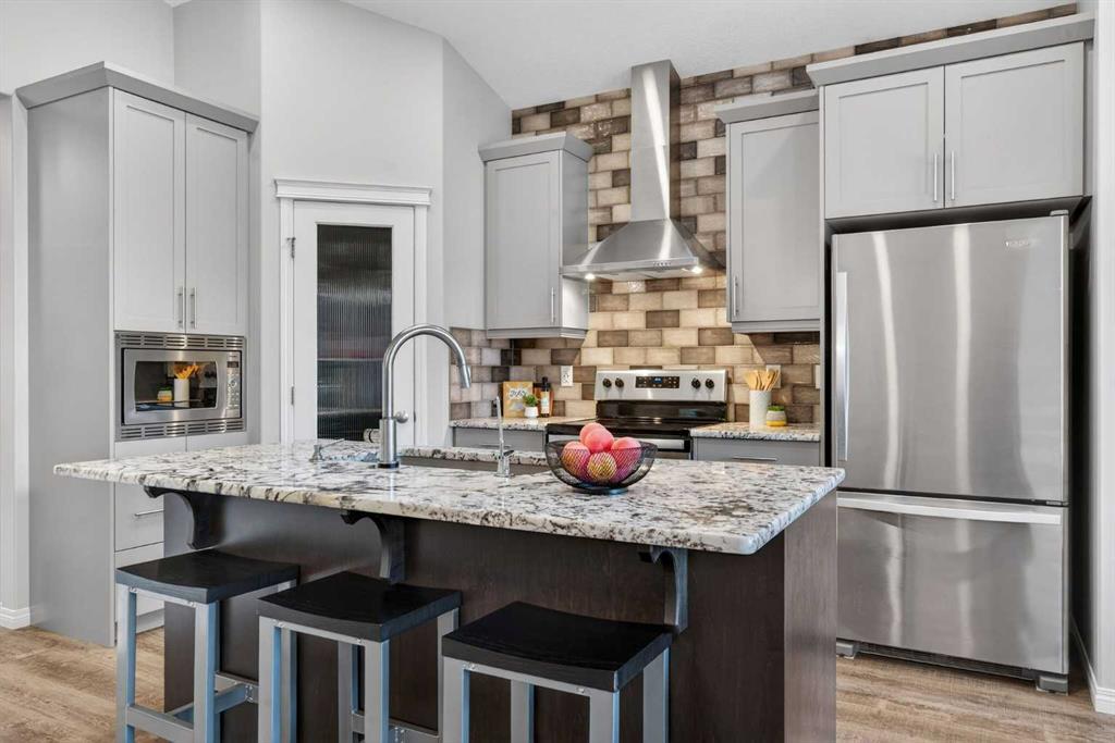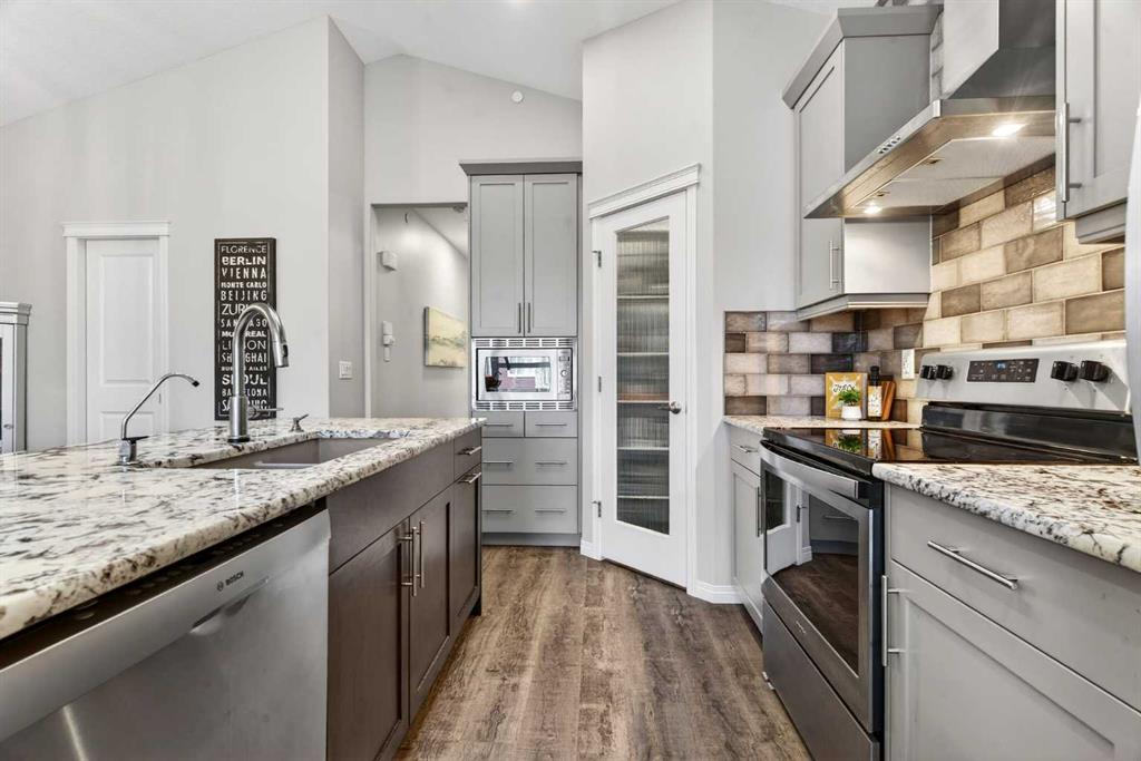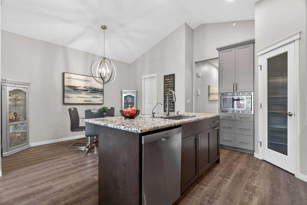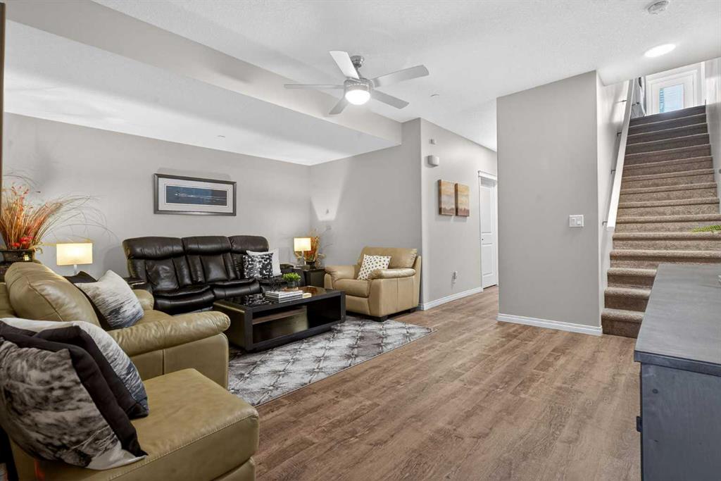 Welcome home! This beautifully designed bungalow in Livingston offers nearly 2,000 total sq.ft. of comfortable, easy living, with a layout that balances open gathering spaces and private retreats. The main floor welcomes you with an open floorplan that seamlessly connects the kitchen, dining, and living areas, creating a bright, inviting space that works just as well for quiet mornings as it does for hosting friends and family. The kitchen is both functional and welcoming, featuring generous counter space, a convenient pantry, and plenty of room to cook, prep, and gather. The adjacent dining room is perfectly positioned for everyday meals and special occasions alike, while main floor laundry adds an extra layer of convenience to your daily routine. The primary bedroom is located on the main level, offering a peaceful retreat complete with its own full ensuite with double vanities and a walk-through closet. The fully developed basement features 9ft. ceilings with two additional bedrooms, providing comfortable accommodations for family, guests, or a home office setup, along with another full bathroom for added ease and privacy. A large family room, creating the perfect space for movie nights, game days, or simply relaxing at the end of the day completes this level. Outside, the zero-maintenance backyard allows you to enjoy your outdoor space without the upkeep, while air conditioning ensures comfort throughout the warmer months. An oversized, insulated, and heated double detached garage completes the property, offering ample room for vehicles, storage, and hobbies. Livingston is a growing community with fantastic amenities, schools, shopping, and quick access to Stoney Trail. Book a showing with your favorite REALTOR® today!
