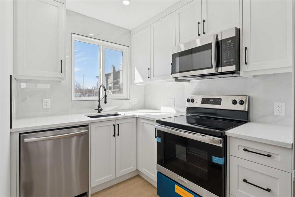 Discover Townhouse 94; a fully developed and exceptionally renovated home with private outdoor space. Here are 5 things we love about this home (and we’re sure you will too): 1. THAT RENOVATION: A once tiered 1970’s townhome has been completely transformed into a modern and inviting space. Featuring all new windows, new LVP flooring throughout, a redesigned magazine-worthy kitchen, recessed electric fireplace, two redesigned + tiled bathrooms, custom closets and new interior doors and patio door. 2. A FLOORPLAN DESIGNED FOR REAL LIFE: As homes trend smaller and smaller Townhouse 94 is a breath of fresh air! The main floor is a showstopper with wide-plank LVP flooring and recessed electric fireplace while the kitchen-seemingly plucked from the pages of House and Home Magazine-offers 3cm quartz counters, stainless appliance package, breakfast bar and ample work/storage space. Upstairs find two well-proportioned bedrooms. The primary is nicely equipped with walk-in closet featuring custom built-ins. The cozy basement offers a large flex space which acts as a home office, media room or even a third bedroom (note, there is a closet but no window in this flex space). 3. PRIVATE BACKYARD: A rarity in the townhouse market, this home backs onto common greenspace which enhances your outdoor privacy and is complete with a private, fully fenced, backyard. The perfect place to entertain, enjoy a coffee, a cocktail or relax at the end of the day. 4. MORE THAN YOU EXPECT: This is not a simple cosmetic renovation. Every detail has been thought out here from all new windows to a high efficiency furnace with EcoBee smart thermostat, new hot water tank and all new PEX plumbing throughout the home.. 5. A CONVENIENT + CENTRAL LOCATION: Rundle is an established and centrally located community in Northeast Calgary. From Townhouse 94 you are walking distance to an abundance of amenities, shopping and restaurants at Sunridge Mall, just a 6 minute walk to the LRT station and a 5 minute drive to both Peter Lougheed and Village Square Leisure Centre a multi-purpose facility with an indoor water park, wave pool, waterslides, ice rinks, weight room, jungle gym, gymnasium along with a wide variety of activities, classes and services. Please note: Some images have been virtually staged