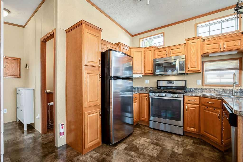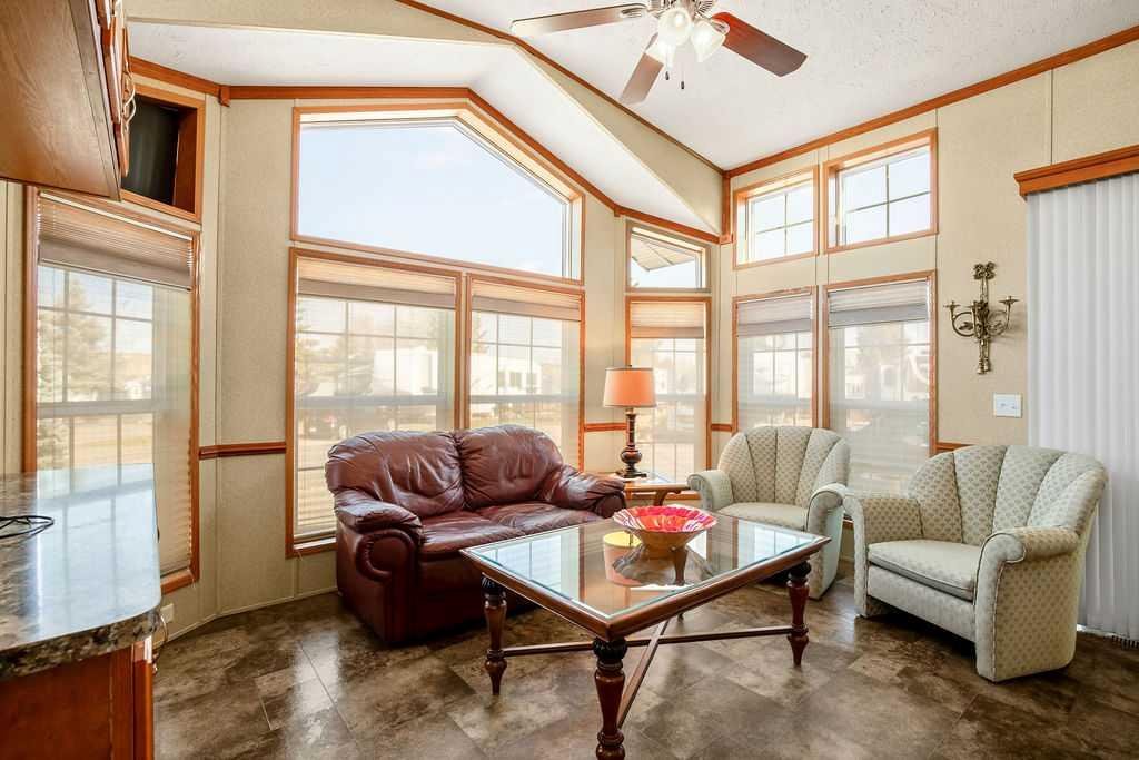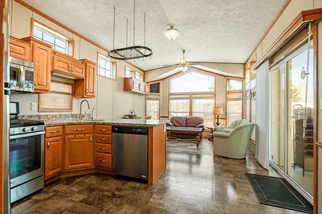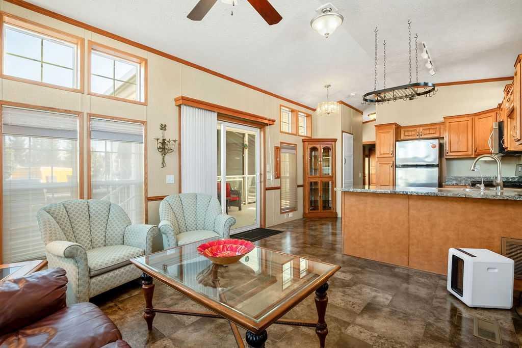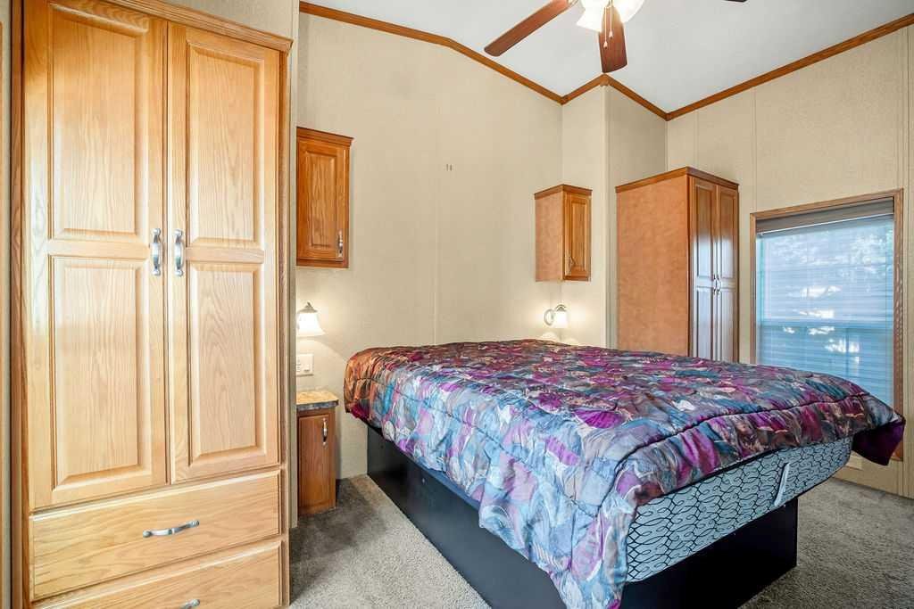 Welcome to 94 Wild Rose Drive! A gem of a park model nestled in Country Lane Estates RV Park. This 538sqft park model was custom built in 2015 with 2×6 construction and vinyl covered drywall. Inside you will enjoy the spacious layout, tons of natural light from a multitude of windows and vaulted ceilings. The living room has a custom built in scotch or games cabinet, and a cozy electric fireplace. The kitchen has plenty of counter space, a breakfast bar, large pantry, fridge, propane gas stove, microwave hood fan and a dishwasher. The primary bedroom is large with lots of storage and is home to the washer and dryer. The bathroom is a large 4pce with tub/shower/sink and linen closet. There is also two exterior doors that lead to your 10 x 21 foot covered and enclosed deck. There is a large finished and insulated “storage shed”(10′ x 15′) (2 x 8 Construction) with 30amp power and wired ethernet on the property. This makes a perfect space for an office/man cave/she den or hobby room… Maybe even a spot for a guest?(Murphy bed included). Some added bonuses include – New roof in 2018, new hot water tank Dec of 2025, new kitchen faucet, storage under the deck, a 300gal water tank under the deck that’s heated for the off season, 100 amp panel, TV antenna that provides 5 channels and shoe storage cabinet. The skirting and the ground has been insulated. Also, everything you see in the photos is included with the purchase of the property. Country Lane Estates, a highly sought-after gated, bare-land condominium community ideally located just south of Calgary in Foothills County. This unique recreational lifestyle development offers the perfect blend of nature, comfort, and community living—just minutes from Okotoks, High River. Set along the scenic Sheep River corridor, Country Lane Estates is designed for seasonal living (April 1st to October 31st) and features a welcoming mix of park model homes and RV sites. Residents enjoy a peaceful, park-like setting surrounded by mature trees, open green space, and walking areas that create a true getaway atmosphere without leaving civilization behind. At the heart of the community is a 7,000+ sq. ft. clubhouse, offering exceptional shared amenities including a games room, fitness center, lounge areas, laundry facilities, and gathering spaces for social events. Outdoor amenities include playgrounds, a dog park, fire pits, and access to recreational activities like fishing, walking trails, and nearby river access. This is a well-managed, active community with a strong social calendar and a welcoming seasonal lifestyle ideal for retirees, snowbirds, or families seeking a summer retreat. The development offers a secure, low-maintenance ownership structure with condo-managed services, making it easy to lock up and leave when the season ends. Country Lane Estates provides convenience paired with a true recreational escape—perfect for those wanting weekend freedom, seasonal living, or a relaxed rural lifestyle close to city amenities.