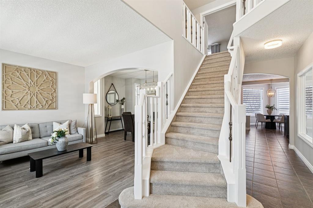 Welcome to a beautifully updated, move-in ready family home offering the perfect blend of comfort, functionality, and location. Freshly painted with brand new carpet and window coverings, this home feels crisp, modern, and ready for its next chapter. With a thoughtful layout designed for everyday living and effortless entertaining, it’s an ideal setting for a growing family. At the front of the home, the living room and dining room flow seamlessly together, creating a warm and inviting space to host friends and family for holiday dinners or intimate gatherings. The true heart of the home is the open-concept kitchen, family room, and dining nook. The kitchen has abundant cabinetry, granite countertops, a spacious pantry, a centre island with seating, and recently updated stainless steel appliances. It’s a space where cooking, conversation, and connection happen naturally. The adjoining family room features a gas fireplace and display shelves, a cozy spot perfect for relaxed evenings at home. A separate main floor office with a built-in desk provides the perfect work-from-home solution. Upstairs, a bright and spacious bonus room with plumbing roughed-in, offers incredible flexibility, whether for movie nights, a kids’ hangout, or a play area filled with sunshine. There are three bedrooms, including a generous primary retreat complete with an ensuite boasting a shower, soaker tub, dual sinks, a makeup vanity, and a large walk-in closet. Two additional bedrooms are perfectly sized for children and share a well-appointed full bathroom. The undeveloped basement is a blank canvas, ready for your custom design and future expansion. Outside, the backyard is an oasis with a deck, pergola, and mature landscaping, an ideal space to grill, entertain, garden, or simply unwind. Located just a short distance from a playground and surrounded by walking paths perfect for biking and dog walks, this exceptional neighbourhood is immersed in nature, with nearby Griffith Woods Park and the beautiful Elbow River offering endless opportunities to explore and enjoy the outdoors. With a new roof completed in 2021, this home offers peace of mind, style, and space, all in a setting families truly love.