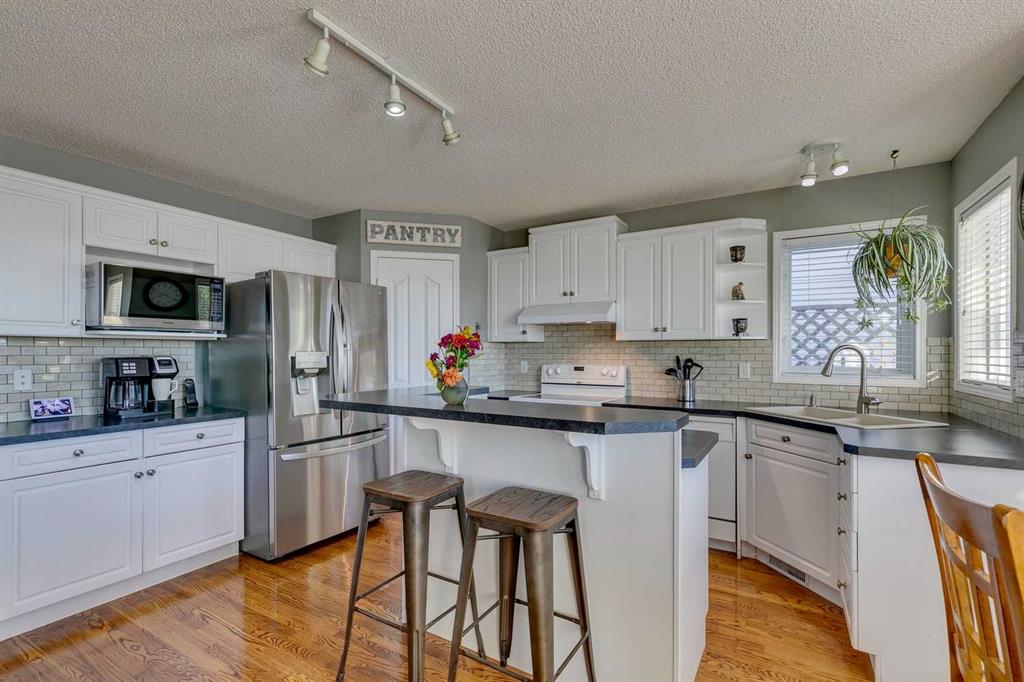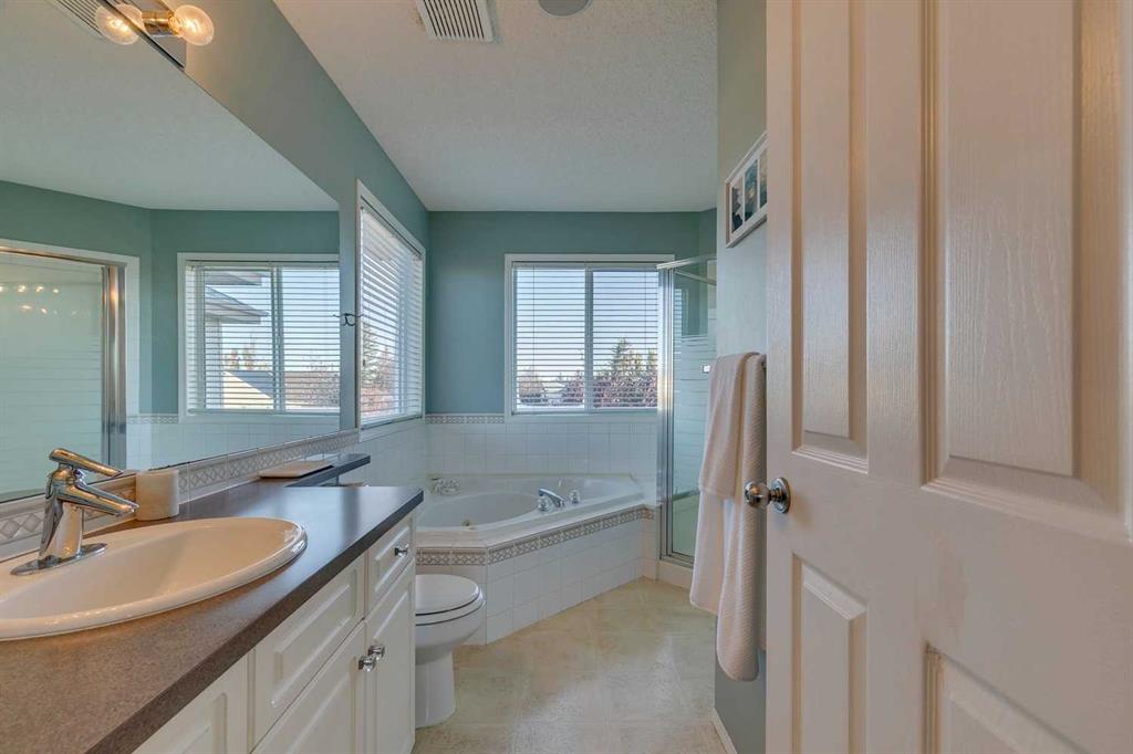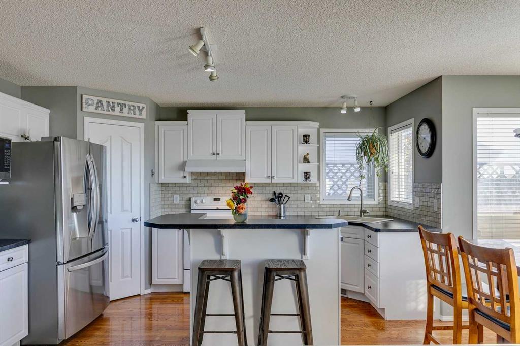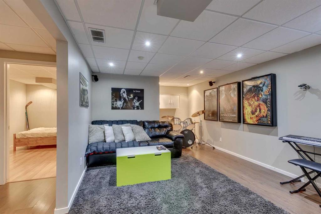 Exceptional Value in Somerset! Tucked away on a quiet, family-friendly street, this beautifully maintained two-storey home offers outstanding value with a sunny south-facing pie lot that’s both private and inviting. With over 2,000 sq. ft. of developed living space, 4 bedrooms, and 3.5 bathrooms, central air conditioning, this home combines comfort, functionality, and location in one incredible package. The main floor features hardwood floors, fresh paint, loads of light from the south windows and an open-concept design that’s perfect for everyday living. The updated kitchen is the heart of the home, complete with modern countertops, a stylish tile backsplash, and plenty of workspace. It flows seamlessly into the bright living room anchored by a cozy gas fireplace — the perfect spot to relax or entertain. A practical rear mudroom adds everyday convenience, while large south-facing windows fill the home with natural light throughout the day. Upstairs, you’ll find three generous bedrooms, including a spacious primary suite with a private ensuite and soaker tub, plus a versatile bonus room ideal for a home office, playroom, or media space. The fully finished basement offers a fourth bedroom with a walk-in closet, a full bathroom, and a large recreation area — perfect for guests or teens needing extra space. Step outside to your sunny south backyard, complete with a large deck for summer barbecues, a flagstone firepit area, and a custom smart-controlled waterfall feature — a unique touch that makes this home truly special. The oversized pie lot offers extra space and privacy, with mature landscaping and room to enjoy year-round. Located in desirable Somerset, you’re close to everything — schools, playgrounds, the Somerset Water Park, Shawnessy shopping district, restaurants, C-Train station, and easy access to Stoney and Macleod Trail. This home represents exceptional value in one of Calgary’s most convenient and family-oriented communities.