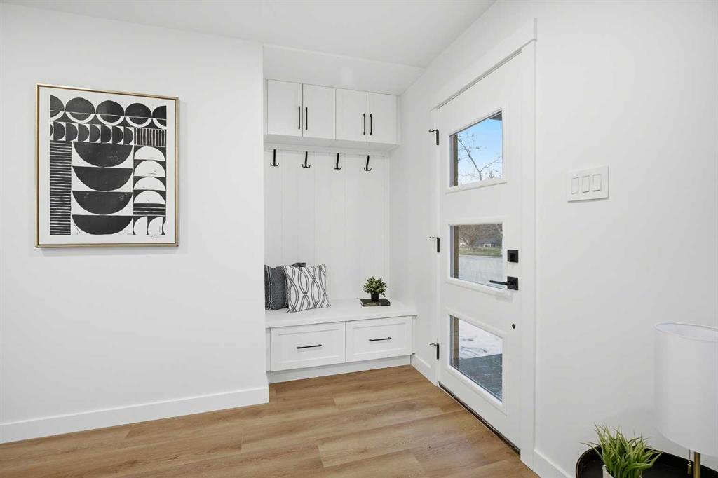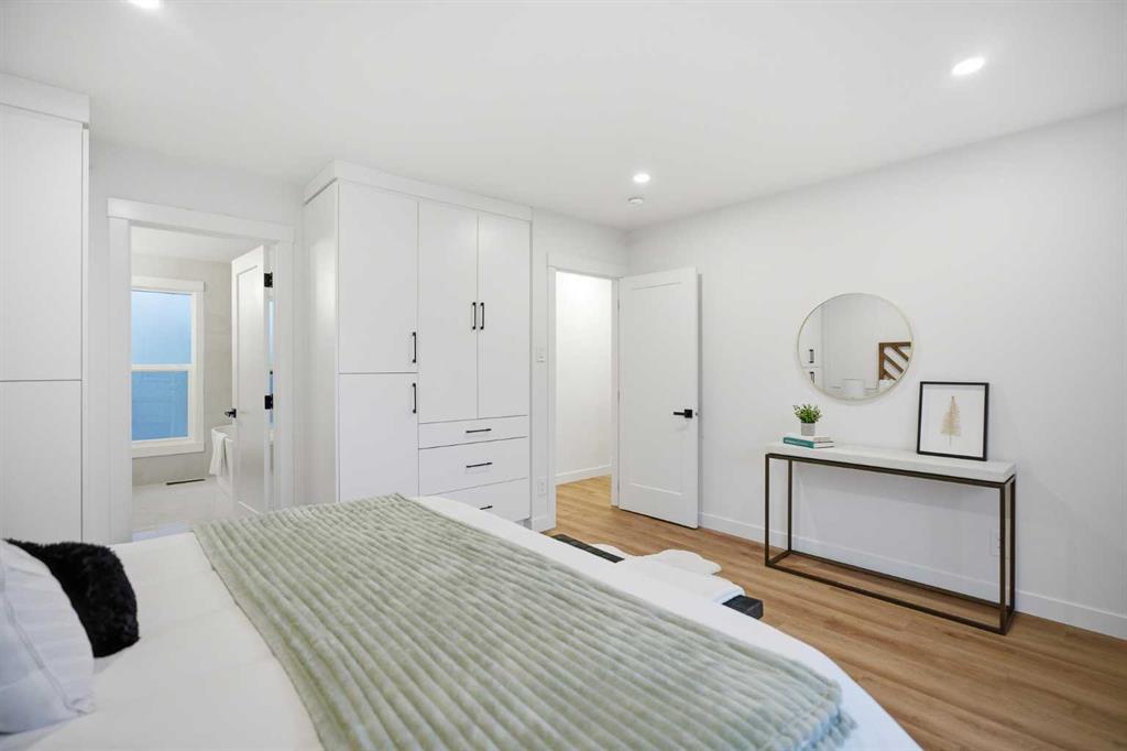 | EXTENSIVELY RENOVATED | ALL PERMITS PULLED | FITNESS ROOM/GYM | WET BAR | NEW DOUBLE GARAGE | Modern living starts here—welcome to this extensively renovated, down-to-the-studs bungalow in the sought-after community of Acadia, where thoughtful design, quality craftsmanship, and luxury finishes come together seamlessly. Completely redone inside and out, this home features a new exterior, brand new garage, furnace, hot water tank, windows, doors, trims, flooring, custom cabinetry, and rough-ins for security cameras. Every detail has been carefully curated to offer both style and functionality for today’s lifestyle. Perfectly situated just steps from schools, parks, and playgrounds, and only minutes to shopping and amenities along Macleod Trail and Heritage Drive, the location offers unbeatable convenience. From the moment you arrive, you’re welcomed by a charming front porch and standout curb appeal with board and batten siding, custom lighting, and large windows that create a clean, modern aesthetic. Inside, a spacious entryway features a built-in front closet and opens into a bright, open-concept main floor finished with warm luxury vinyl plank flooring throughout. The living room is anchored by a tiled fireplace feature wall and a large picture window that fills the space with natural light. The kitchen is designed to impress, showcasing shaker cabinetry, quartz countertops, a statement island, oak finishes and stainless steel appliances. The adjacent dining area is highlighted by a designer light fixture and complimented perfectly by the glass railing. Down the hall, you’ll find a beautifully finished 4-piece bathroom with custom tile work. The primary bedroom offers a true retreat with space for a king-sized bed and a fully built-out closet with custom cabinetry, along with a spa-inspired 5-piece ensuite complete with a dual vanity, freestanding fluted tub, and a glass shower. An additional bedroom with a built closet and large window completes the main level. The fully developed basement adds incredible versatility, featuring a large recreation space, a sleek bar, a modern 3-piece bathroom, and two generously sized bedrooms—perfect for guests, extended family, or multi-generational living. The laundry room is thoughtfully designed to double as a fitness space/gym, adding even more functionality to the home. Outside, enjoy a spacious yard with a concrete patio perfect for summer BBQs. The brand new oversized double garage is perfect for car enthusiasts or additional storage. Stylish, functional, and truly move-in ready, this is a rare opportunity to own a turn-key home in one of Calgary’s most established communities. Book your private showing today.