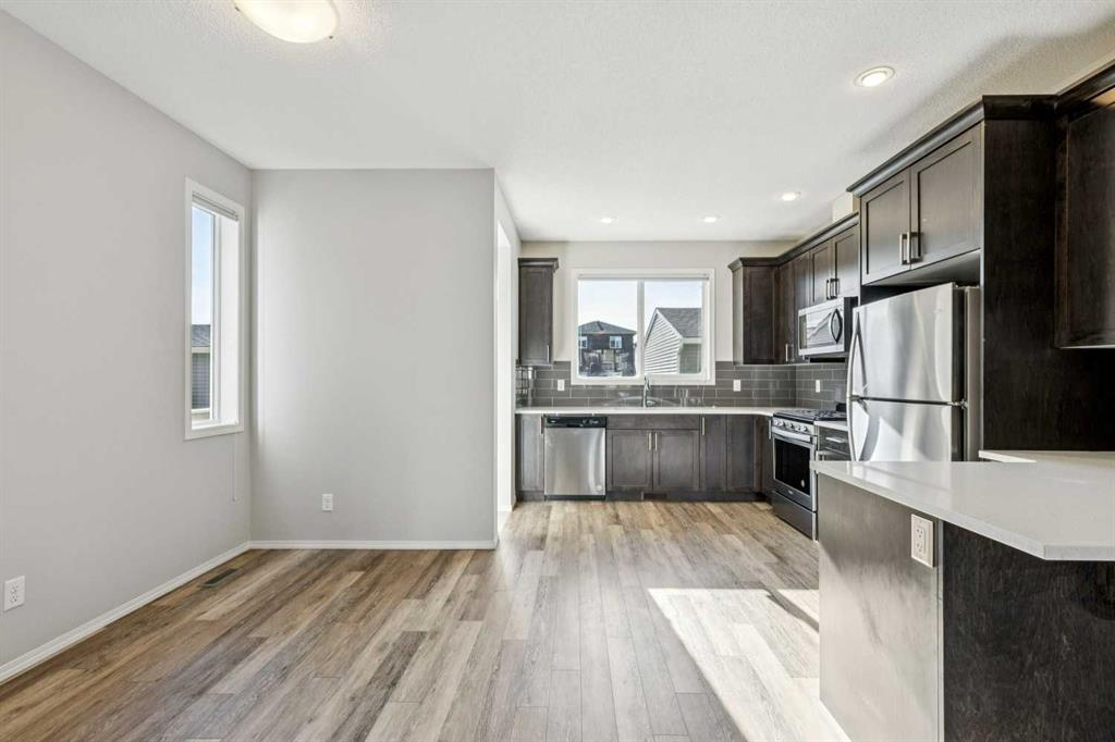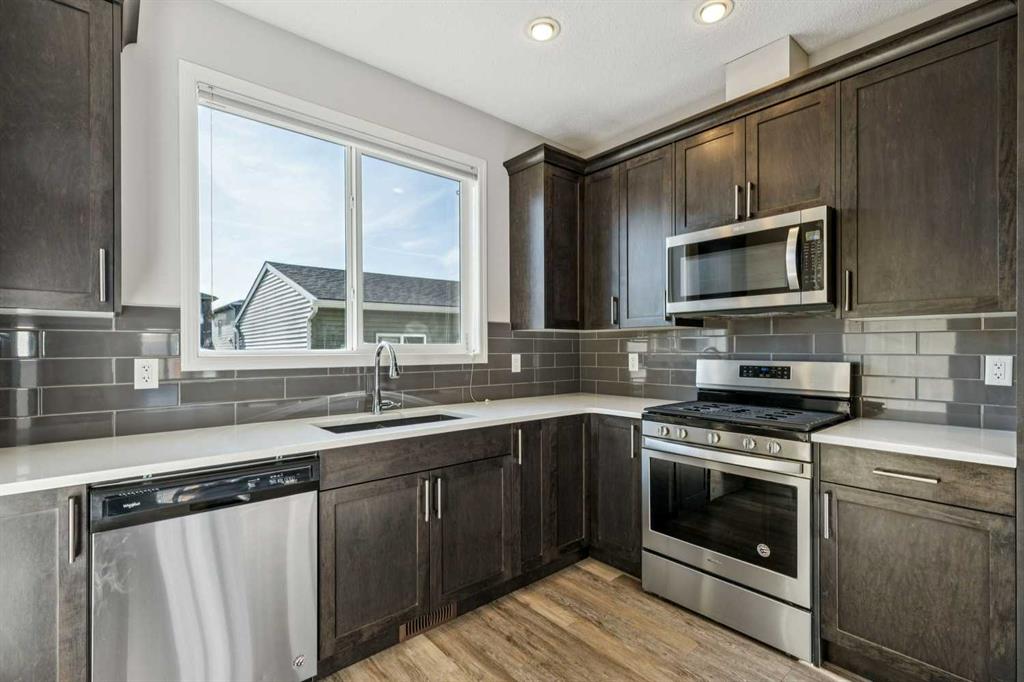 Outstanding, beautifully maintained, one owner, Morrison built 1/2 duplex with legal suite! This 1,576 sq ft home features a large living room with adjoining dining area, kitchen with eating nook and access to the spacious 11’x10′ deck and private yard. The upper level boasts a tech area for your computer, 2 bedrooms with walk-in closets, 4 pc bathroom, a primary bedroom with a walk-in closet and 4 pc ensuite plus there is the convenient upper level laundry. The 650 sqft lower level suite has a living/dining area, bedroom, 4 pc bath and laundry – great for extended family or tenants. Two separate furnaces. New IKO shingles in 2025. Off-street parking pad with alley access, opportunity to build a double garage. Close to transit and K-9 school, easy access to Stoney Trail. Vacant – immediate possession available. Live up and rent down!