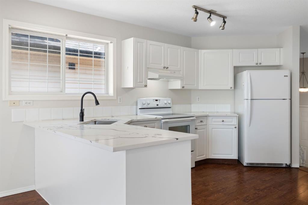 Welcome to this well-maintained and upgraded home in Coventry Hills! Very nicely kept 3 bdrm + 2 full baths, bi-level, with finished basement, on a quiet street. Approximately 1,700 livable square feet, PAVED back alley way, OVERSIZED double garage, NEW Hot Water Tank (2024) and NEW Roof (2025)! Lots of beautiful light throughout the main level, open kitchen with breakfast bar and room to entertain. The nearby living room is perfect for relaxing, will easily fit a nice sized couch + love seat. The dining area has room for a good-sized table and has french-doors that walk out onto the back deck and lower patio. The Primary Bedroom also gets ample light in the morning, and the nearby 2nd bedroom could also make a great office/den! The lower level has a large recreation/flex room with built-in, custom, WET-BAR and also a sizeable 3rd bedroom. Walking distance to Coventry Hills School (Public) and St Clare School (Catholic) and more schools nearby! Booking your showing now!