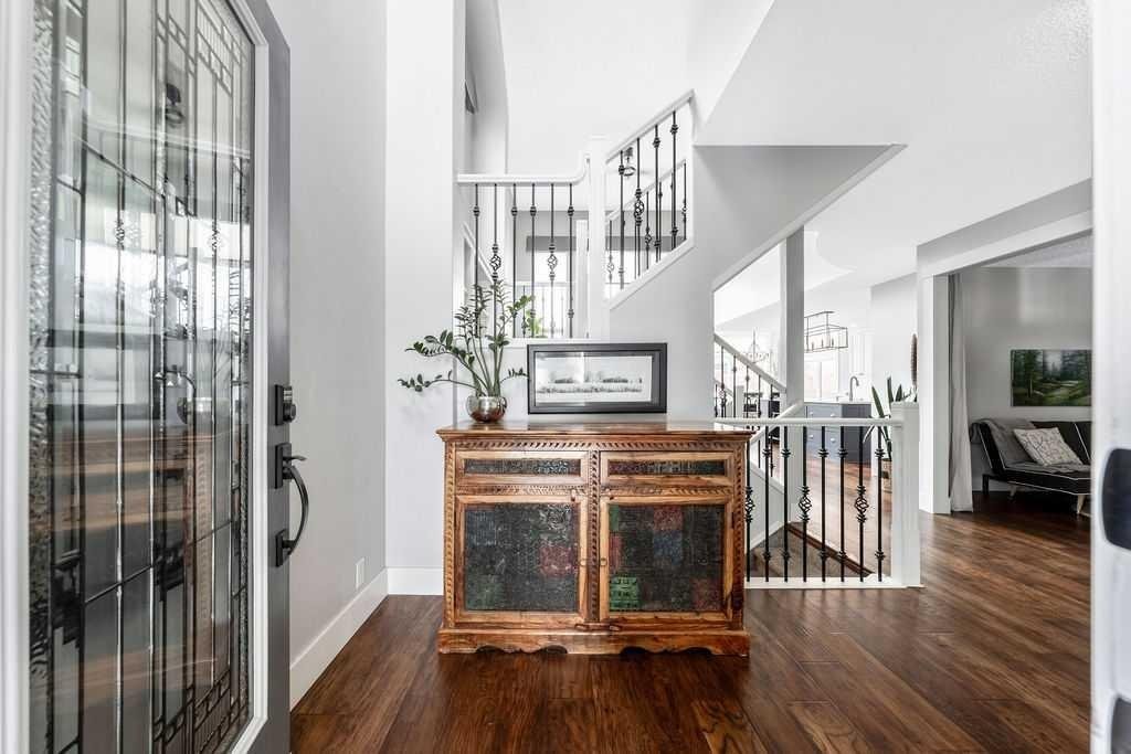 Welcome to this exceptional home in sought -after Cranston Ridge with 2988 square feet of immaculate living space and perfectly positioned just a short walk from the breathtaking pathways of Fish Creek Park and the Bow River ravine system. From the moment you step through the front door, pride of ownership is unmistakable. This immaculate residence showcases an exquisite contemporary open design highlighted by soaring two-storey windows that flood the living space with natural light and ceiling heights approximately 17′ high. The stunning living room is anchored by a warm and inviting gas fireplace, creating the perfect setting for both elegant entertaining and relaxed everyday living. The newer chef-inspired kitchen is a true showpiece, featuring a massive quartz island, custom hood fan, induction stove, stainless steel appliances, and a convenient appliance garage perfect for keeping your espresso station tucked neatly away. There is also a spacious corner pantry. A bright and spacious breakfast nook with a built-in banquette overlooks the beautifully landscaped back yard, offering charm and functionality. The main floor is finished with newer engineered hardwood floors and brand new carpet ( 2 months ago) has been installed throughout the upper floor, open riser stair case and basement stairs. There are 3 generous sized bedrooms, and the primary features an electric fireplace and a 5 piece ensuite with a barn door to close off your walk in closet. The fully developed basement features in floor heat, a 4th bedroom, a spacious family room with wine fridge and a luxurious 3 piece bath with walk in shower. Step outside to your own private oasis. The professionally landscaped yard features an elevated stone sun deck and a large integrated pond complete with pump and filter creating a tranquil backdrop for summer evenings. There is also a ground level deck off the patio doors from the house perfect and convenient for BBQ’S. There is a large shed in the back to house all your lawn and garden tools. This home is also air conditioned and ready for the upcoming summer season. Noteworthy are the newer glass front door and the garage door that were both replaced in 2019. This beautifully maintained home offers a rare combination of style, comfort, and an unbeatable location. You will not want to miss out on this one.
