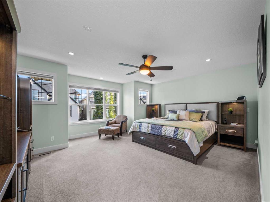 **OPEN HOUSE SATURDAY OCTOBER 4th 10:30AM – 3:30PM** Perfectly positioned directly across from Mahogany’s coveted West Beach gate and steps from a family park, this Baywest estate home blends size, luxury, and lifestyle in Calgary’s most award-winning lake community. Offering almost 3,150 sq ft and 4 bedrooms above grade, this property is designed for those who want space without compromise: oversized bedrooms, a bright bonus room wired with in-ceiling surround speakers and CAT5, and a stunning primary suite featuring a walk-in closet, spa-like ensuite with heated floors, and private retreat-like feel. Convenience is built in with an upper-level laundry room complete with sink, built-in cabinetry, and extra storage, making busy family life effortless. The main level combines functionality with sophistication: a chef’s kitchen with wall oven, gas cooktop, updated stainless steel appliances, and a butler’s pantry that doubles as a prep hub or barista-worthy coffee station, all flowing into the dining and living area complete with a warm fireplace as the centrepiece. A fantastic covered back patio with built-in BBQ line extends your living space outdoors for cozy summer nights. A dedicated main-floor office creates a true work-from-home solution. Premium upgrades elevate every corner: Duette top-down/bottom-up blinds, smart lighting throughout, two furnaces with zoned A/C, a Vacuflow system, and a premium Kinetico water treatment system with water softener, all supported by recently serviced mechanicals for peace of mind. The lower level, with high ceilings and a roughed-in fifth bedroom, is ready for your future vision; add a sixth bedroom and still have room to create a recreation haven. Outside, the oversized double garage with bump-out offers ample room for tools, bikes, or toys. Beyond the walls, Mahogany sets the stage for Calgary’s best lifestyle: a 63-acre freshwater lake, private beaches, skating, swimming, paddleboarding, a 22,000 sq ft Beach Club, 22 km of pathways, wetlands, parks, schools, and vibrant shopping and dining. This isn’t just a home—it’s a statement of living well in Calgary’s most complete community. Don’t forget to check out the virtual tour and book your private viewing today!