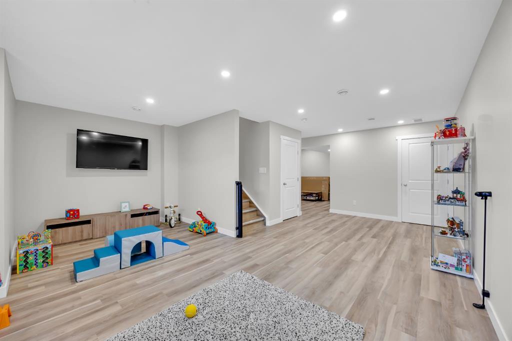 The fully developed basement provides extra living space—perfect for a recreation room, home gym, or entertainment area.