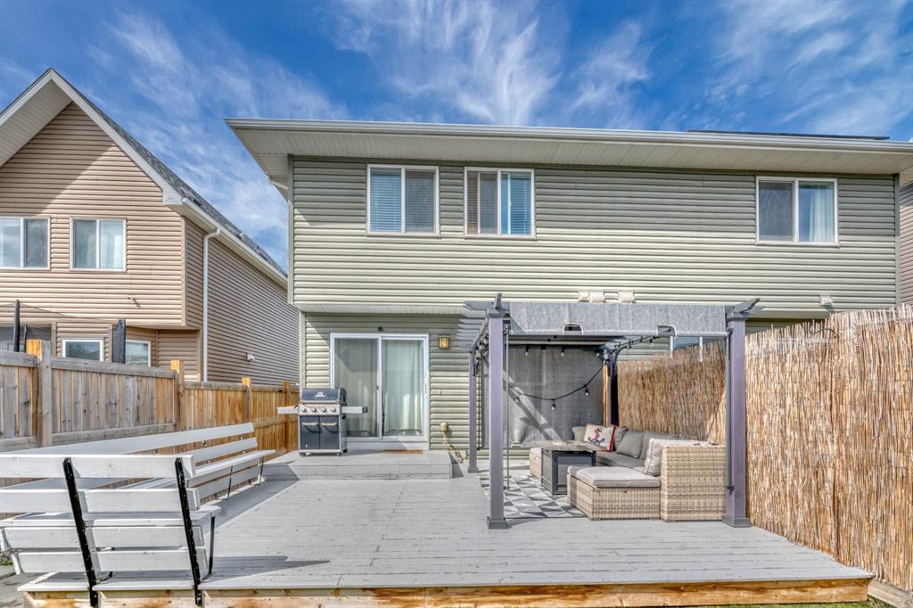 Welcome to this bright and beautifully maintained 1,411 sq. ft. semi-detached home in the highly sought-after lake community of Auburn Bay! Offering a fully finished basement, an oversized double-detached garage, and exceptional walkability, this home delivers incredible value in one of Calgary’s favourite four-season lake communities. The main floor is warm and inviting, featuring a cozy gas fireplace, large windows, and patio doors that flood the space with natural light. The kitchen offers rich wood cabinetry, great counter space, and a functional layout perfect for everyday living and entertaining. A convenient side exterior door adds extra flexibility and easy access to the backyard. Upstairs, you’ll find two generous bedrooms including a spacious primary retreat complete with a soaker tub, separate glass-enclosed shower, and a large vanity—a true private getaway. The fully finished basement expands your living space with a large recreation room, a comfortable bedroom, and a full bathroom—ideal for guests, teens, or a home office setup. Outside, enjoy a low-maintenance landscaped yard with turf, a great deck for summer BBQs, and your oversized double-detached garage offering ample parking and storage. Located right across from a school and just a short walk to grocery stores, restaurants, and everyday amenities, this home offers unbeatable convenience. Plus, enjoy exclusive access to Auburn Bay Lake with year-round activities including swimming, beaches, skating, fishing, and community events. A perfect blend of comfort, location, and lifestyle—welcome home!