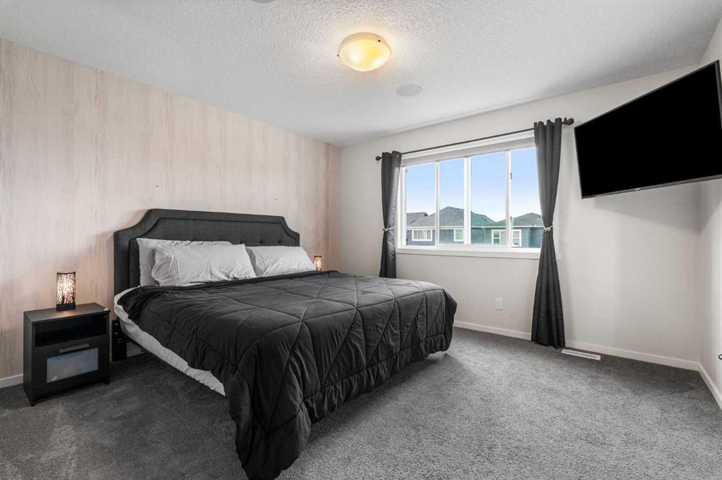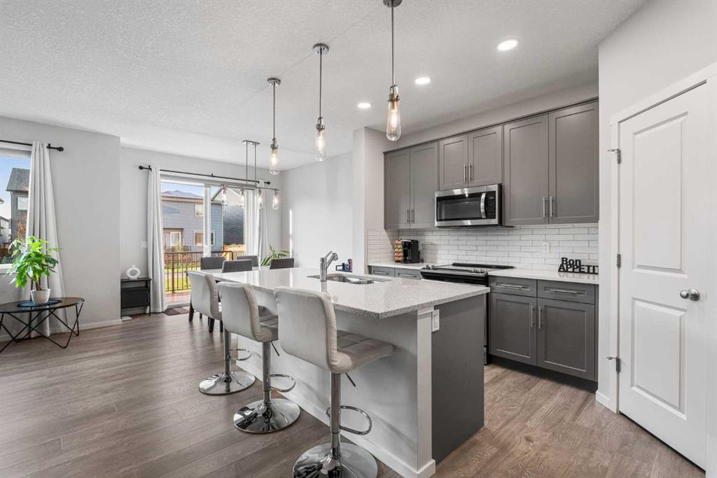 FORMER SHOWHOME | GEMSTONE LIGHTS | TRIPLE PANE WINDOWS | OVERSIZED GARAGE | BUILT IN SPEAKERS | CENTRAL A/C. Welcome to this exceptional former showhome in the vibrant community of BELMONT, where THOUGHTFUL DESIGN meets EVERYDAY LUXURY. From the moment you arrive, this home stands out with its CUSTOM GEMSTONE LIGHTING and OVERSIZED GARAGE, perfect for larger vehicles or extra storage. Step inside to discover a BRIGHT OPEN CONCEPT MAIN FLOOR with WIDE PLANK VINYL FLOORING, HIGH 9 FT CEILINGS, an inviting LIVING AREA WITH GAS FIREPLACE, and a CHEF’S KITCHEN equipped with QUARTZ COUNTERTOPS, STAINLESS STEEL APPLIANCES, a WALK IN PANTRY, and sleek CABINETRY. A SKYLIGHT ABOVE floods the space with natural light, enhancing the airy feel. Upstairs, you will find a SPACIOUS BONUS ROOM WITH HIGH CEILINGS, a serene PRIMARY SUITE WITH SPA INSPIRED 5 PIECE ENSUITE and WALK IN CLOSET, plus TWO MORE GENEROUS BEDROOMS and a conveniently located LAUNDRY ROOM. TRIPLE PANE WINDOWS throughout provide ENERGY EFFICIENCY and a WHISPER QUIET INTERIOR. The entire home is wired for sound with IN CEILING SPEAKERS and a HIGH END AMPLIFIER SYSTEM, ideal for entertaining or enjoying your favourite playlists in style. Stay cool in summer with CENTRAL AIR CONDITIONING and enjoy the MODERN ELEGANCE of every corner in this professionally designed space. The BASEMENT offers a blank canvas, ready for your custom vision with LARGE WINDOWS and PLUMBING ROUGH INS. This is the perfect blend of SHOWHOME QUALITY FINISHES and REAL WORLD FUNCTIONALITY in one of Calgary’s most desirable communities.