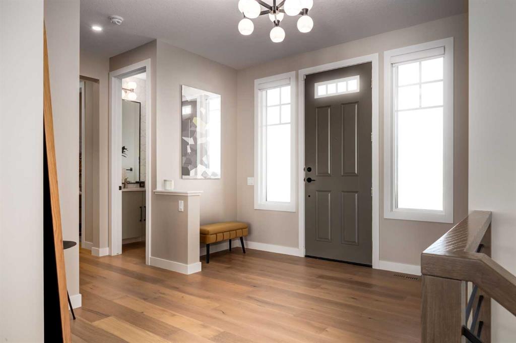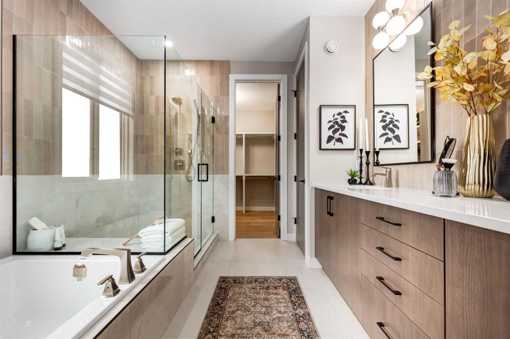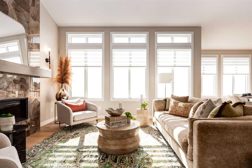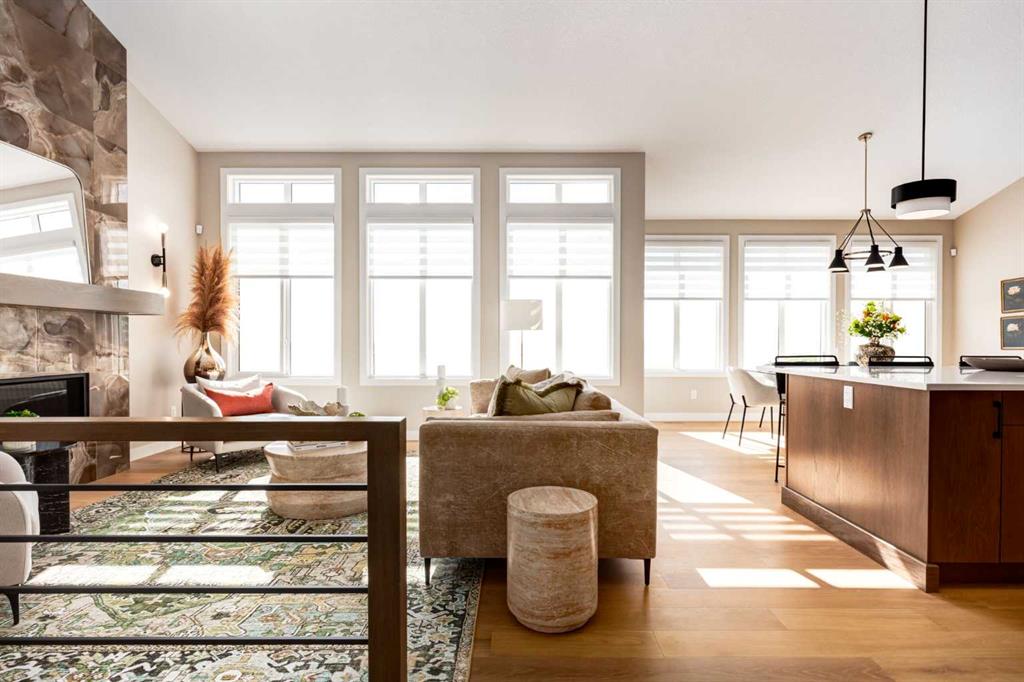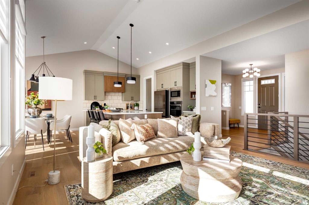 This stunning, newly built bungalow in the prestigious community of Cimarron Estates will be ready for possession in April 2026! For a limited time, you can select the interior finishes for this home, creating a customized property that perfectly reflects your style. Situated on a 17,000 sqft walkout lot with views to greenspace and no neighbour behind, this is truly a rare opportunity. As the last newly built home in Cimarron Estates, don’t miss your chance to secure this one-of-a-kind property. With nearly 3,000 sqft of developed living space, this fully finished home blends luxury and comfort. The main level spans 1,740 sqft, featuring an expansive open-concept living area with vaulted ceilings in the kitchen, dining room, and great room, creating an airy, inviting atmosphere. A wall of rear windows fills the space with natural light, while beautiful hardwood flooring flows throughout. At the heart of the home is a gourmet kitchen with a walk-in pantry, full-height cabinetry, a large island with a beverage cooler, and premium stainless-steel appliances, including a gas cooktop, range hood, wall oven, microwave, and French-door fridge. The kitchen seamlessly connects to the dining area with access to the full-width deck overlooking the backyard & greenspace, as well as the great room, highlighted by a striking floor-to-ceiling tiled fireplace. The primary retreat features a spa-inspired ensuite with dual sinks, a full-tile walk-in shower, a soaker tub, and a large walk-in closet with direct access to the laundry room for added convenience. Completing the main floor are a mudroom off the garage, a 2-piece powder room, and a versatile den/flex room. The fully finished walkout basement adds 1,153 sq. ft. of living space, including two generously sized bedrooms, a full bathroom with dual sinks, and a massive storage/mechanical room. A bright, open rec room with an electric fireplace and a dedicated games area framed by large windows makes the lower level both functional and inviting. From here, walk out to a spacious covered patio and the expansive yard. Other highlights include a side-drive triple-car garage, 8-foot interior doors, premium finishes, and a thoughtful layout designed for modern living. Don’t miss this opportunity to own the final newly built home in Cimarron Estates—a home that offers space, privacy, and luxury in one of Okotoks’ most sought-after communities. **Note: Photos are from a previous show home and may not be an exact representation of the property.