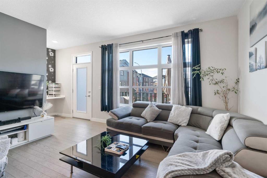 Welcome to this Stunning 3-Bedroom corner unit with Sunny South Exposure in Walden! This bright beautifully updated 3-bedroom, 2.5-bath end unit townhome offers the perfect blend of style, function, and community living. Enjoy the sunny south-facing balcony or relax on the charming front patio—a great spot to catch up with neighbours and friends. Prefer private entry? Step inside through the attached garage, which includes a versatile flex room —perfect for a home office, gym, or potential fourth bedroom (seller happy to convert back to tandem garage). Thoughtful upgrades throughout include: Newer carpet, Renovated main floor half-bath, Custom built-in desk/office nook, Designer wallpaper in all bedrooms, Quartz countertops, Stainless steel appliances, Engineered hardwood floors, 9 ft ceilings for an airy, spacious feel. The bright open-concept main floor features a cozy living room, a designated office/desk area, a stylish kitchen with plenty of cabinets, counter space, and two windows that flood the room with natural light. The spacious dining area flows seamlessly onto your sunny south-facing deck with a privacy screen and BBQ gas line, making outdoor entertaining a breeze.Upstairs, the generous primary bedroom offers multiple windows, elegant designer touches, a walk-in closet, and a private 3-piece ensuite. Two additional good-sized bedrooms, a full bathroom, and convenient upstairs laundry complete the upper level.The garage flex room can easily be removed to restore the original double tandem garage layout if desired.Located steps from a community green space and fire pit, this home offers a true sense of neighbourhood living. You’re also just minutes from parks, shopping, restaurants, Starbucks, Tim Hortons, and major routes like Macleod Trail, Stoney Trail, and Deerfoot Trail.Welcome home to Walden—where modern living meets everyday convenience!