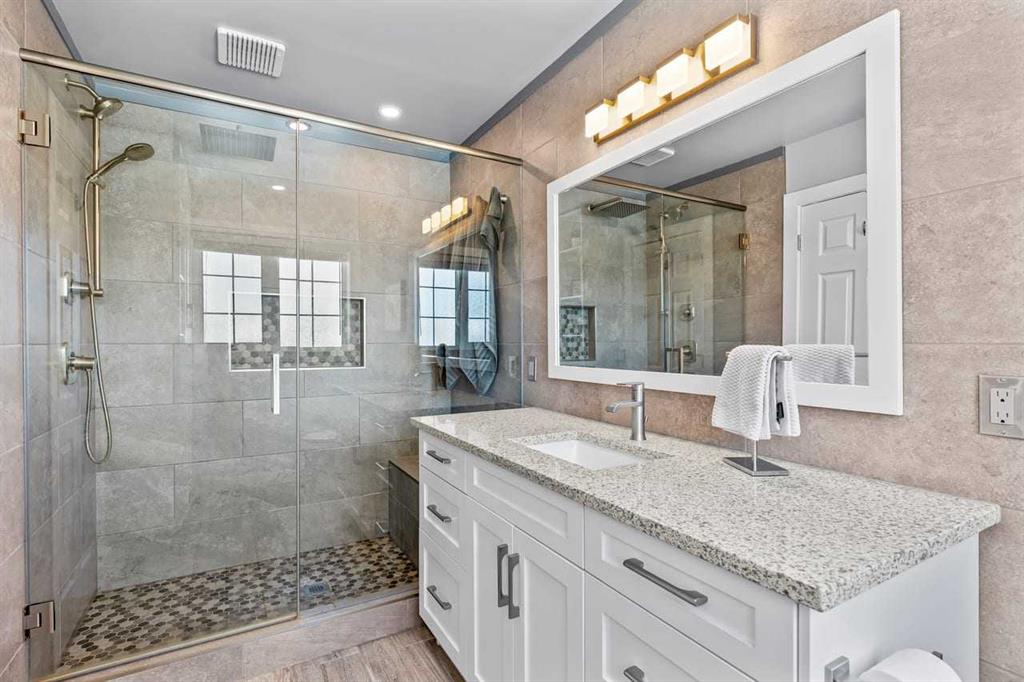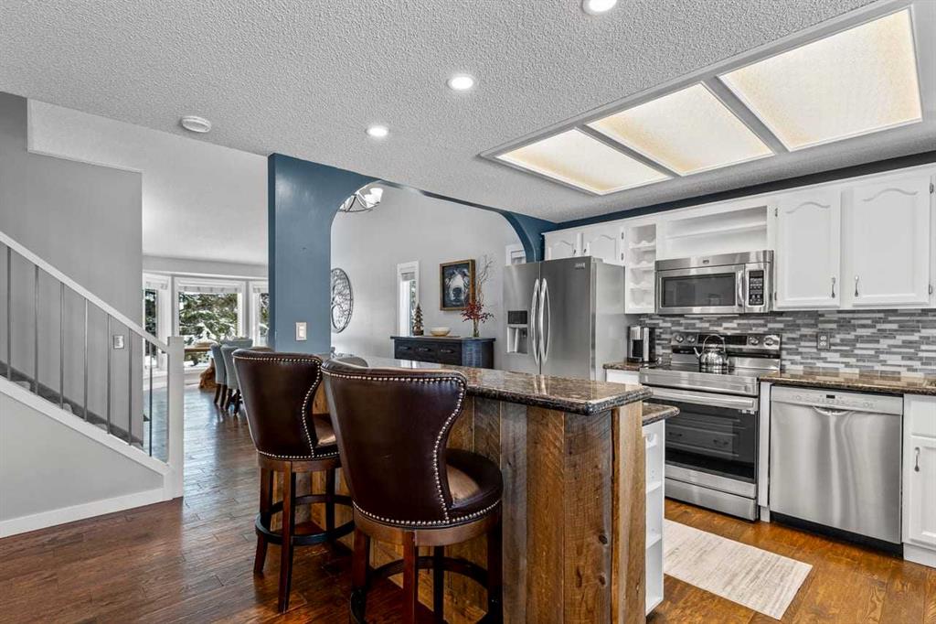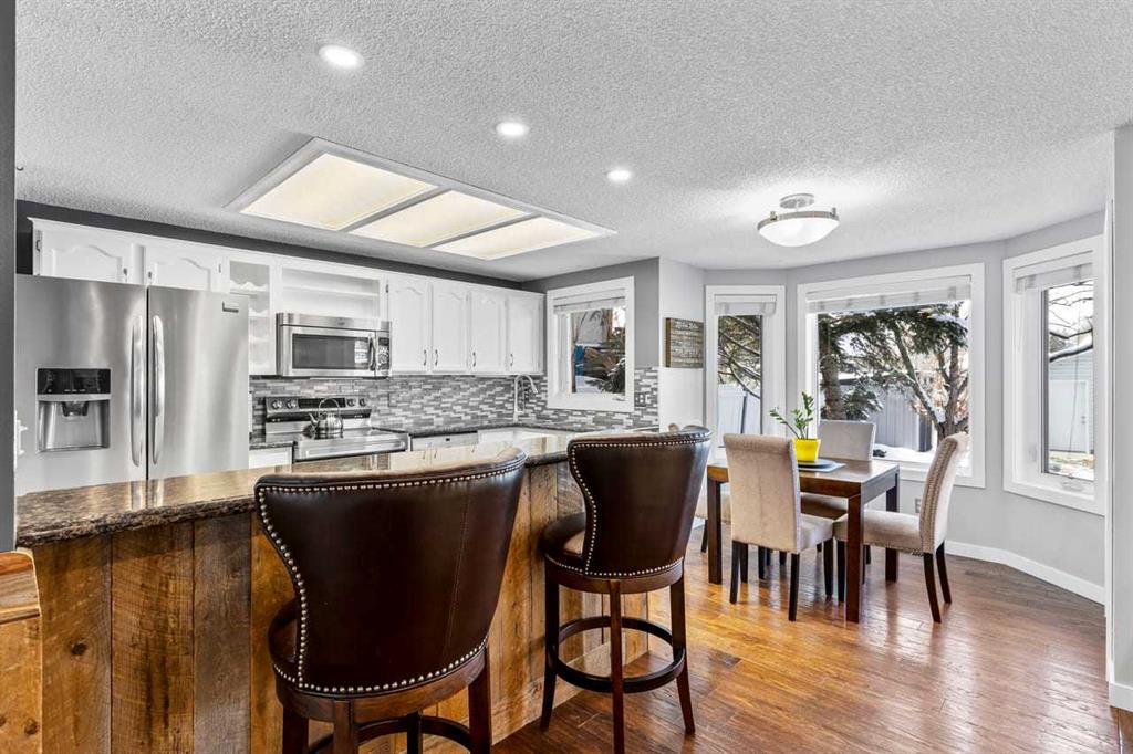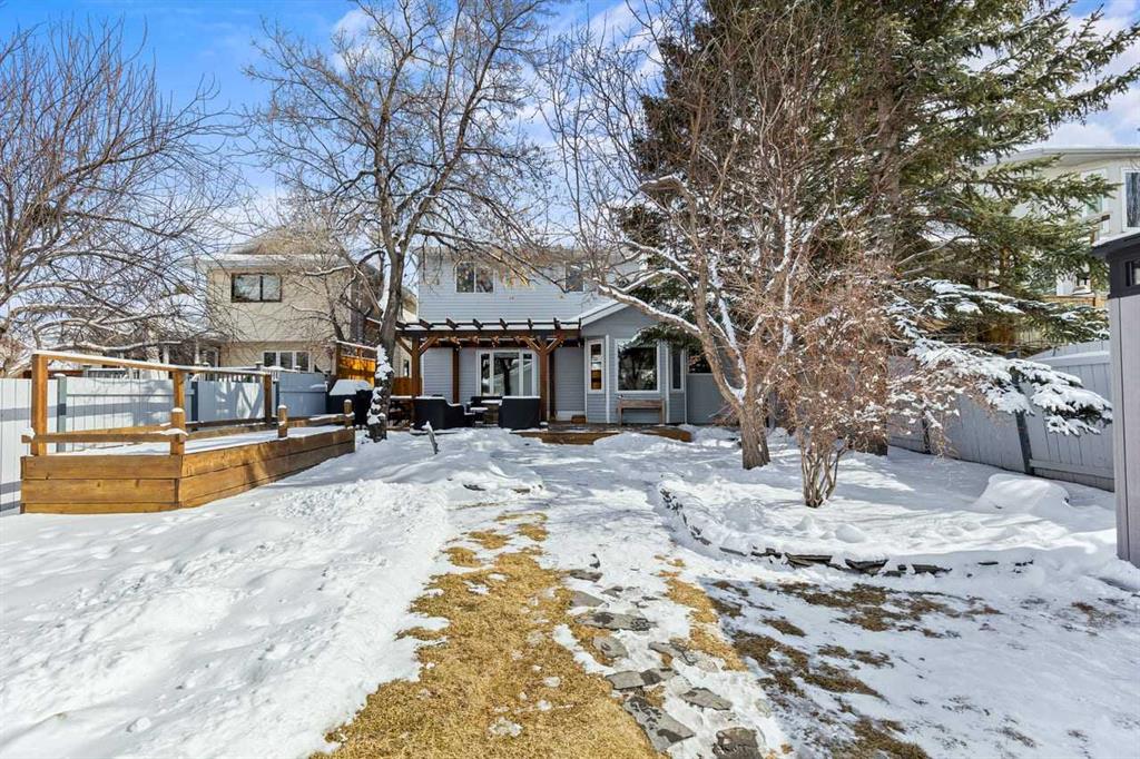 ** Open House April 12 from 2 pm – 4pm ** Welcome to this beautifully updated two-storey home nestled in a quiet, mature northwest neighbourhood, where towering trees, larger lots, and a true sense of community meet modern comfort—and where the rare dual-garage setup with full vehicle access to both sets this property apart in the most exciting way. Whether you envision the ultimate man cave, private office, workshop, or she-shed retreat, this home offers unmatched flexibility for how you live, work, and unwind. Inside, you’re greeted by soaring vaulted ceilings, a warm and inviting layout with formal living and dining spaces, and a stunning family room anchored by a stone surround fireplace with wood mantle and custom built-ins, bringing that perfect touch of rustic charm. The kitchen has been beautifully refreshed with brand new stainless steel appliances, freshly painted cabinetry, and granite countertops, blending timeless style with modern upgrades. Hardwood floors span the main level, leading to a functional mudroom with laundry and a recently updated two-piece bath. Upstairs offers three bedrooms, including a newly updated ensuite, while the fully developed basement provides a massive rec space, additional family room, and future potential. Step outside to an incredible-SECLUDED backyard oasis with a large cedar deck and pergola, mature landscaping, and room to breathe—something only established communities can offer. With a heated double detached garage, additional shed and woodshed, and that standout second garage access, plus major updates like triple pane windows, new doors, trim, lighting, roof, and more, this home perfectly balances rustic warmth with fresh, modern living. All of this, just moments from major routes and with easy access west to the mountains—making it the ideal blend of nature, convenience, and versatility