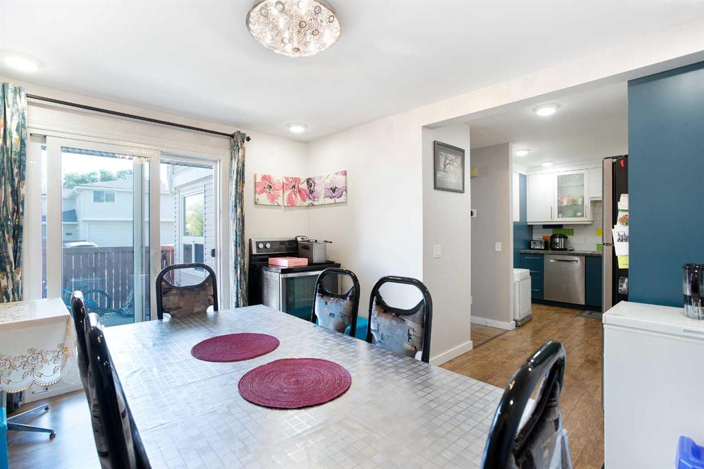The refreshed kitchen features stainless steel appliances, custom cabinets, and a stylish backsplash, and opens to a spacious dining area with new sliding patio doors that lead out to the private fenced yard.