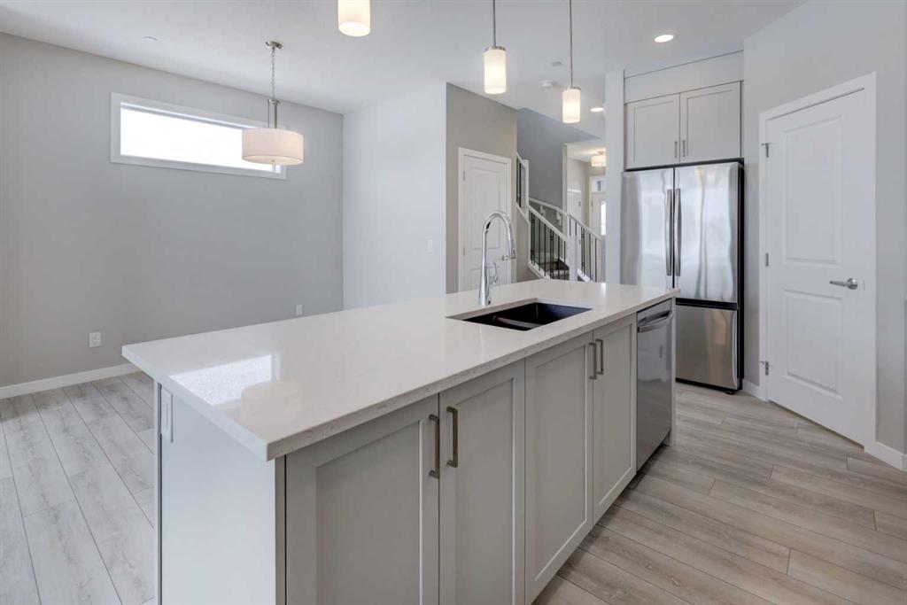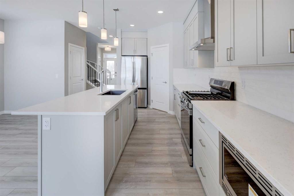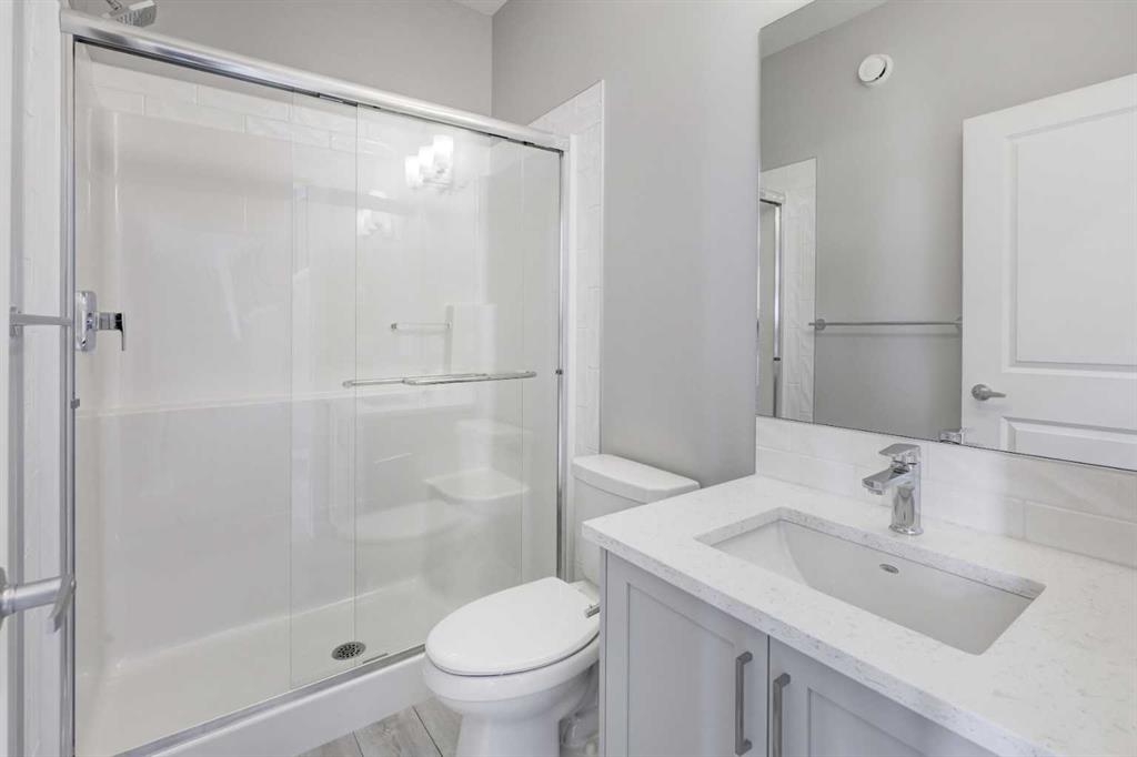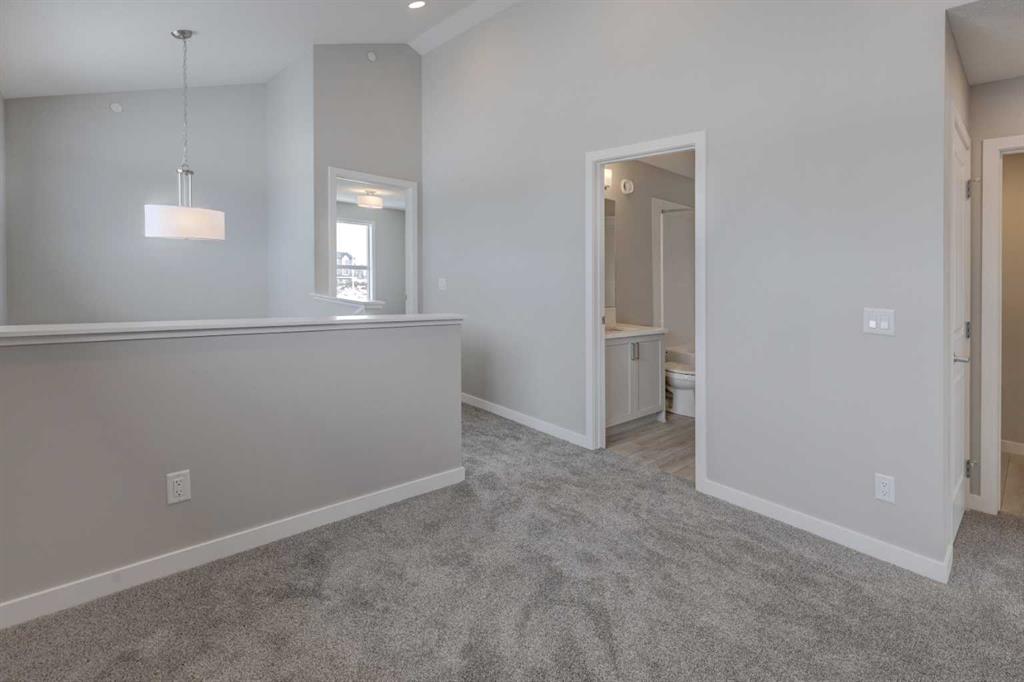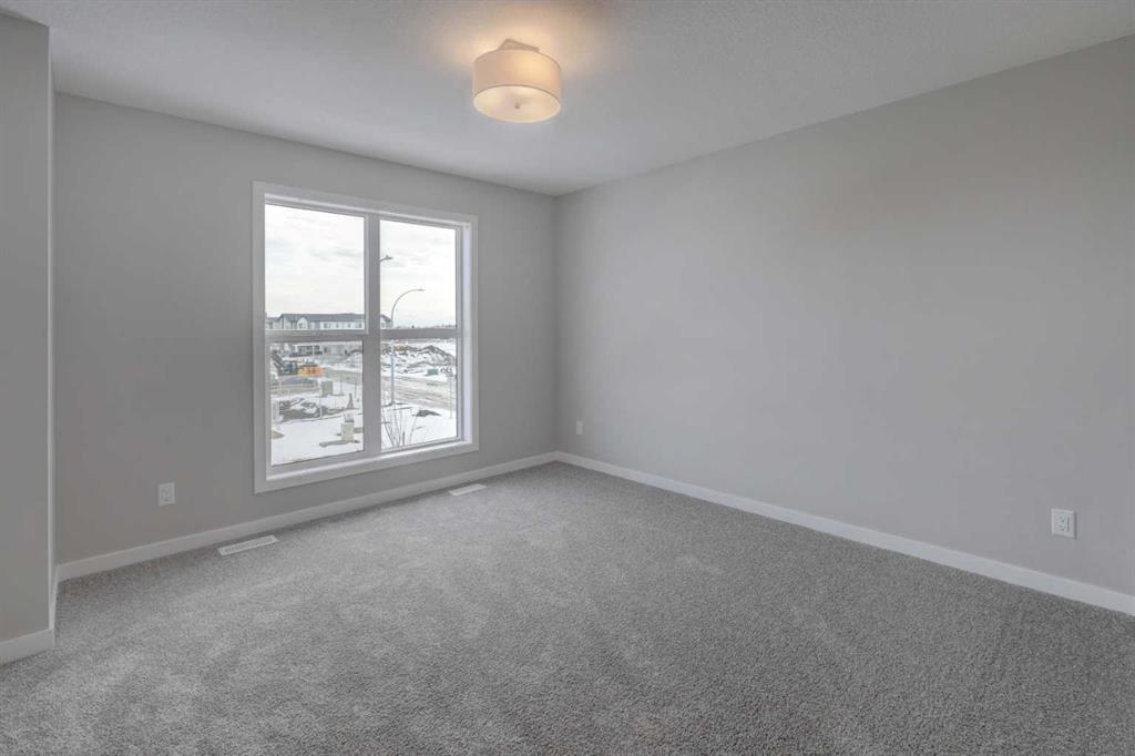 Welcome to the charming new community of Princeton – nestled just south of the TransCanada Highway and west of Garden Road, offering effortless access to both Calgary and Chestermere while striking the perfect balance between serene country living and urban convenience; surrounded by parks, schools and future retail spaces, Princeton is an ideal place to call home. Introducing the BELLEVUE by EXCEL HOMES – a gorgeous BRAND NEW, NEVER LIVED IN home offering 1785 SF of thoughtfully designed living space filled with natural light from an abundance of windows. Designed with families in mind, this home features FOUR BEDROOMS ABOVE GRADE, including a rare main floor bedroom with full bath, plus three generous bedrooms upstairs. Main floor mud room helps keep daily life organized. The kitchen is beautifully appointed with over-height cabinetry, pot & pan drawers, pantry, large island, engineered stone countertops and stainless steel appliances including gas range, built-in microwave and chimney hood fan. The family-sized dining nook and spacious great room are open to the kitchen and overlook the backyard, creating the perfect layout for entertaining and everyday living. The main floor showcases 9’ knockdown ceilings, luxury vinyl plank flooring and a neutral, thoughtfully curated color palette. Staircase with metal rails leads upstairs where you’ll find three generous bedrooms including a stunning primary suite with a huge walk-in closet and spa-inspired ensuite, a central bonus room with vaulted ceilings, convenient upper laundry and a full 4-piece bath. This home also offers a REAR DOUBLE CONCRETE PARKING PAD and is Certified Built Green with a Platinum rating, featuring energy-efficient upgrades including low-E windows, Energy Star appliances, low-flow toilets and faucets, and is uniquely SOLAR READY. Added peace of mind comes with a sprinkler system to the main and upper levels, plus sprinkler heads in the basement. The basement is roughed in for a future LEGAL SUITE (subject to Rocky View County approvals). Quick possession available!