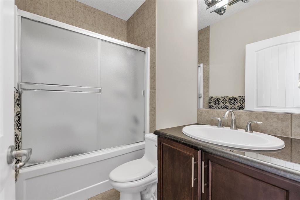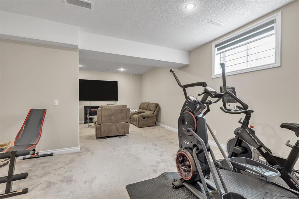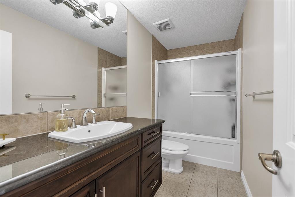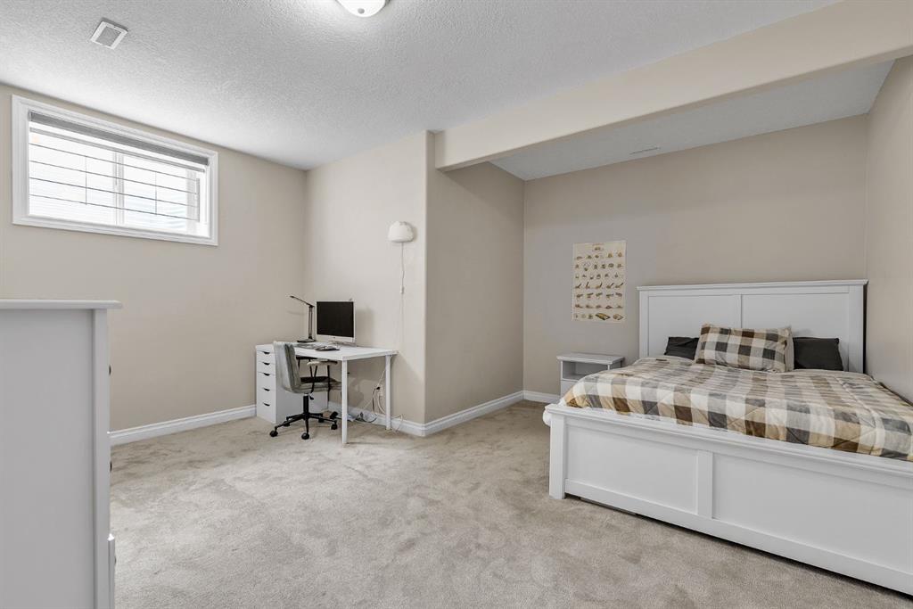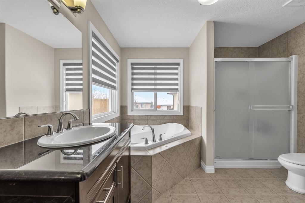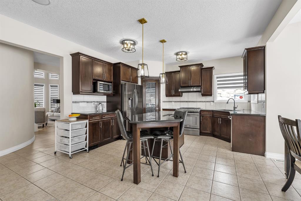 The kitchen offers granite countertops, a gas cooktop, rich cabinetry, a walk-in pantry, and a large island that flows into the breakfast nook and out to the full-width upper deck, making it ideal for both everyday living and entertaining. Upstairs, the primary suite includes a spa-inspired ensuite with a jetted tub, dual sinks, a separate shower, and a walk-in closet, along with three additional bedrooms and a full bathroom. The fully developed basement extends the living space with two additional bedrooms, a full bathroom, a spacious recreation area, and ample storage. Ideally located near parks, pathways, shopping, and schools, this home combines space, comfort, and convenience.