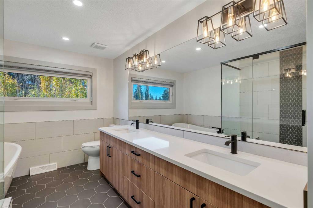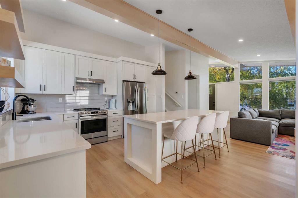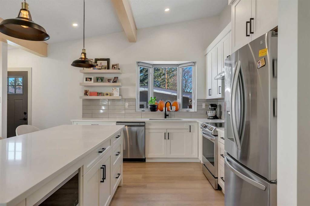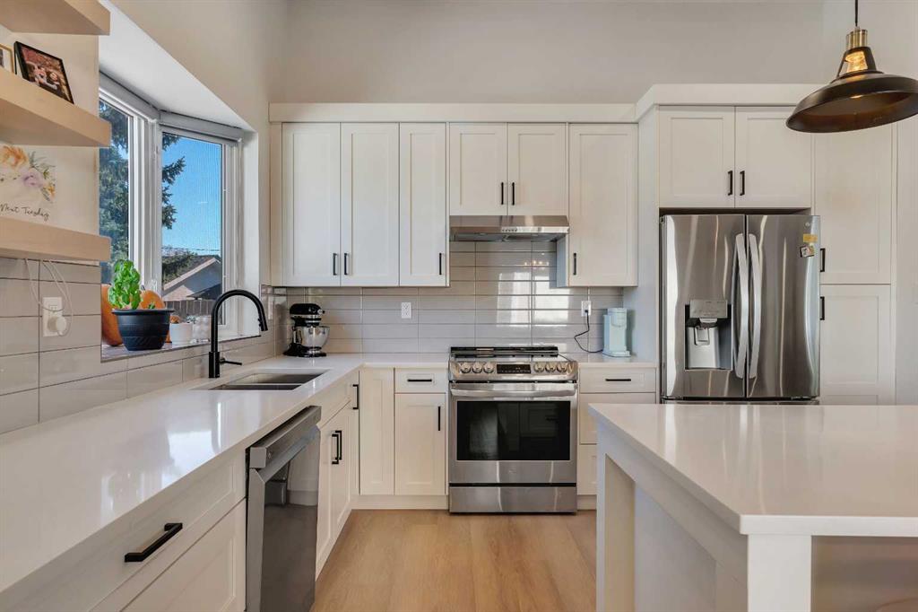 Welcome to 9816 Austin Road SE. Tucked away on a quiet, tree-lined street, this extensively upgraded four-bedroom, three-bathroom home combines modern luxury with timeless design. Every detail has been thoughtfully planned and professionally renovated—nothing was overlooked. From the moment you arrive, the stunning low-maintenance front garden and freshly stuccoed exterior set the tone for what’s inside. Step through the front door and you’re greeted by an impressive open-concept living space featuring vaulted ceilings, exposed beams, and a custom fireplace that anchors the room in warmth and style. The chef-inspired kitchen is equipped with high-end finishes, premium cabinetry, and an elegant flow perfect for both entertaining and everyday living. Upstairs, retreat to your luxurious primary suite with a walk-through closet leading to a spa-inspired five-piece ensuite—complete with soaking tub, double vanities, and top-tier fixtures. A second spacious bedroom and full three-piece bathroom complete the upper level. The lower level continues to impress with two additional bedrooms, a modern three-piece bathroom, laundry area, and a large recreation room ideal for movie nights or a home gym. No detail was spared in this transformation. Extensive front landscaping, a new roof (2023), and prior renovations including new windows, furnace, hot water tank, kitchen, bathrooms, flooring, and that incredible ensuite—this home truly has it all. If you’re looking for a move-in-ready home in one of Calgary’s most desirable, family-friendly neighborhoods, 9816 Austin Road SE delivers craftsmanship, comfort, and character in every square foot.