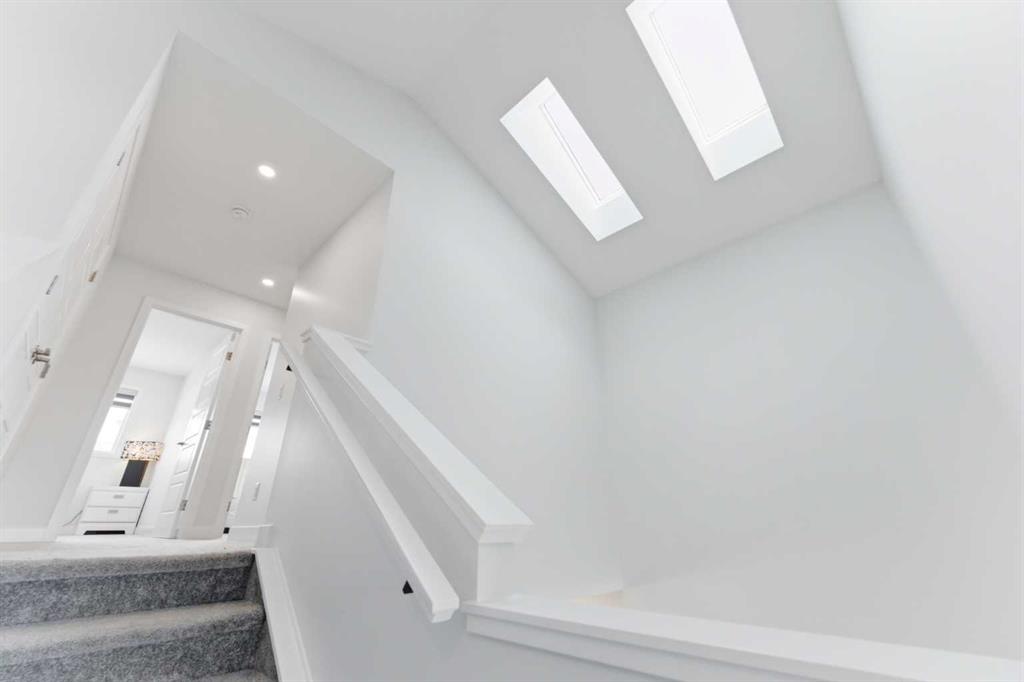 Welcome to Glacier Ridge, one of Calgary’s most desirable new communities, celebrated for its scenic walking paths, open green spaces, and strong sense of community. With future schools, nearby shopping, dining, and easy access to major routes including Shaganappi Trail, this vibrant neighbourhood offers the perfect balance of nature and urban convenience. Introducing this stunning 2023 Jayman BUILT Edward model detached home, meticulously crafted from design to completion and loaded with premium upgrades. Featuring 3 bedrooms, 2.5 bathrooms, and a detached double garage, this home stands out as a truly exceptional opportunity in its price range. Step inside to a bright and dramatic open-to-below main living area, enhanced by skylights and massive windows that flood the space with natural light. The main floor is finished with durable waterproof laminate flooring throughout, creating a seamless and modern look. The inviting living room showcases a sleek electric fireplace, perfectly complementing the stylish kitchen. The contemporary kitchen is beautifully appointed with quartz countertops, a range hood fan, striking white mosaic backsplash, and modern grey hardware, delivering a bold yet cohesive design. Upstairs, an additional staircase window continues to enhance the home’s bright and airy feel. The primary suite offers a relaxing retreat, alongside two additional bedrooms and a full bathroom. Built with sustainability and efficiency in mind, this home includes: Built Green Canada standard construction, Triple-pane windows, 10 solar panels with micro-inverter system, Tankless water heater, UV air purification system for whole-home air quality, water filter system. Enjoy the benefits of a fully integrated smart home package, including: Amazon Echo Show 8 hub, Front door smart doorbell camera, Rear exterior camera with motion light, Ceiling-mounted TP-Link Wi-Fi access point. (All devices are app-compatible and Alexa-enabled for seamless control.) A perfect combination of modern design, advanced technology, and energy-efficient living—this home truly checks all the boxes. Book your private showing today—this one won’t last long!