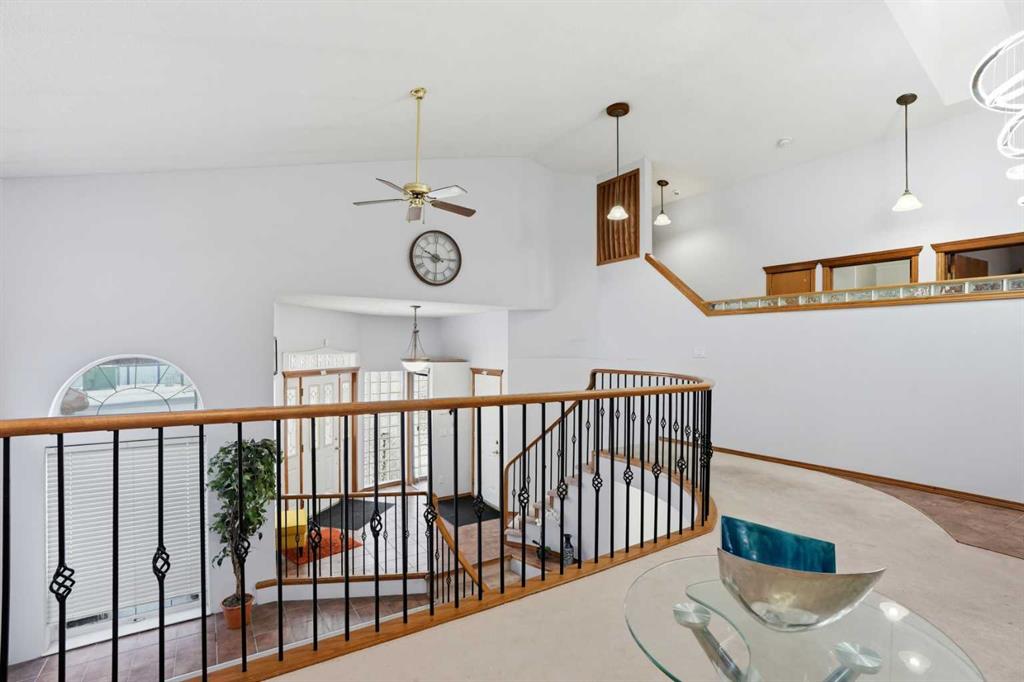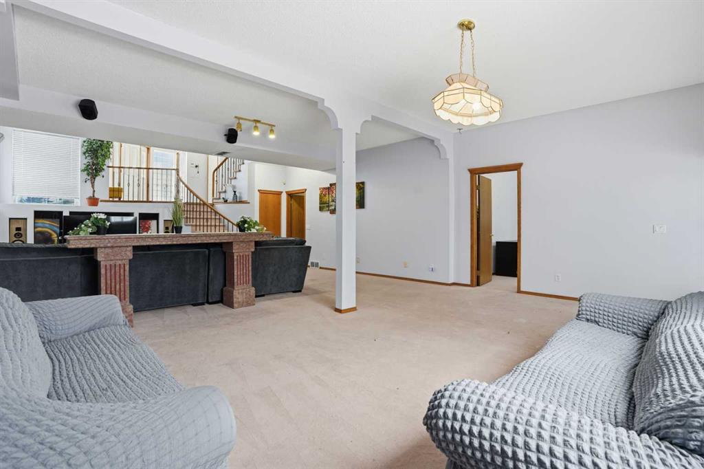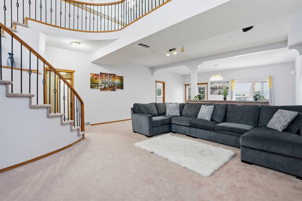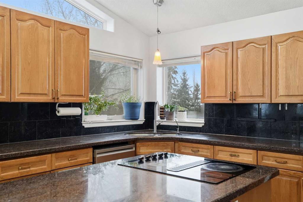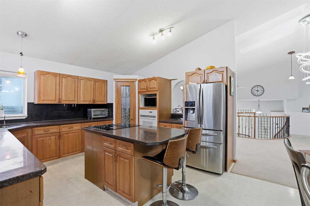 Built to impress, this stunning bi-level home truly has it all — a double attached garage, a walkout basement, and a fantastic location just minutes from the lake. Offering over 2,400 sq ft of living space, this south-facing beauty features 4 bedrooms and 3 full bathrooms, designed to maximize comfort, style, and natural light. Step inside to a grand foyer with a curved feature wall, leading into an open-concept layout with tile flooring, a bright dining area, and a cozy family room complete with a gas fireplace. The oak island kitchen is a chef’s delight, finished with granite countertops, a wine rack, and a spacious walk-in pantry. Vaulted ceilings, large windows, and skylights flood the home with light, creating an airy, inviting atmosphere throughout. Perfect for families, the home offers excellent separation of space with bedrooms thoughtfully spread across three levels — including a private primary suite on its own upper level, separate from the kids’ rooms. The fully finished walkout basement is an entertainer’s dream. Featuring 9’ ceilings, two additional bedrooms, a full bathroom, laundry area, and a massive recreation room with an entertainment centre, this space is ideal for gatherings or relaxation. French doors open to a rear wood deck and a fully fenced south-facing backyard. With quick access to major transportation routes and a brand-new high school under construction nearby, this home combines luxury, functionality, and convenience in one exceptional package.