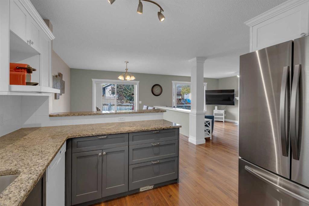 HOME SWEET HOME! Welcome to this freshly updated 2 storey family home situated in the extremely popular NW community of MacEwan perfectly located only 3 homes away from a playground/green space. This fully finished home is move-in ready offering 4 bedrooms, 3.5 bathrooms, 2,615+ SQFT of thoughtfully upgraded living space, central air conditioning and a double attached garage. Heading inside you will be amazed by the spacious, modern open concept floor plan with gleaming hardwood flooring. The main floor offers a 2 piece vanity bathroom, bright foyer, sun-drenched living room with built-in shelving and a cozy gas burning fireplace with a mantle, an expansive dining room, laundry room and the gourmet chef’s kitchen with granite countertops, large granite island with a raised eating bar, full white appliances and a convenient walk-in pantry. Heading upstairs you will find 2 wonderful-sized bedrooms, a fantastic 4 piece bathroom and the primary retreat with a walk-in closet that’s perfect for all your needs and a spa-like 4 piece ensuite bathroom with a jetted soaker tub to relax after long days and a separate shower. The fully developed basement contains a 4th bedroom, another full bathroom, recreation room with built-ins, office/flex/fitness area and ample storage space. UPGRADES include AC (2022), new deck (2022), blown in attic insulation (2019), new carpet upstairs (2021), new fridge (2022), water heater (2017) , new roof and eavestrough (2025). Outside, you will find your double attached garage with additional driveway parking and the backyard offering your private oasis with a fully fenced, landscaped yard with a spacious deck. Unrivalled location with quick and easy access to shopping, the Winter Club, airport, parks, public transportation, schools and all other major amenities. Don’t miss out on this GEM, book your private viewing today!
