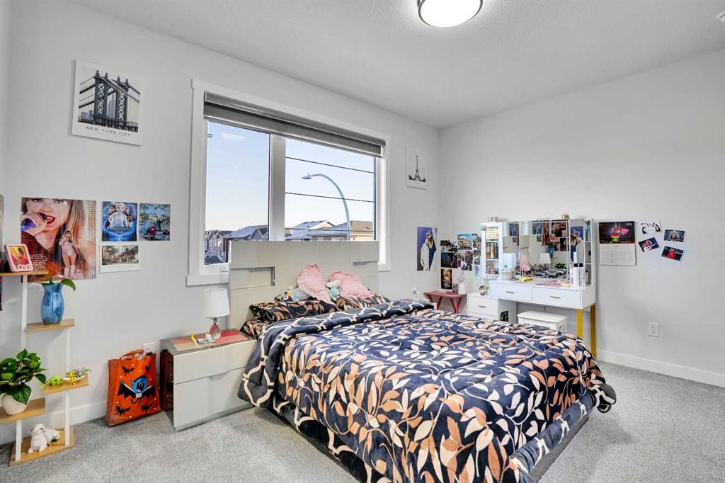 Upstairs, you’ll find four generously sized bedrooms, including two luxurious master suites. The primary suite offers serene lake views, a walk-in closet, and 6-piece ensuite. The second master bedroom overlooks quiet green space and includes its own walk-in closet and ensuite. A bright bonus room and a convenient upper-floor laundry room complete this level.
